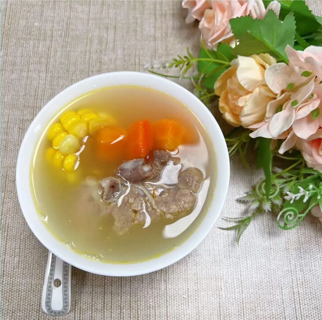 五香鸡中翅、肉末蒸水蛋、蒜蓉油麦菜、胡萝卜玉米筒骨汤、紫薯米饭