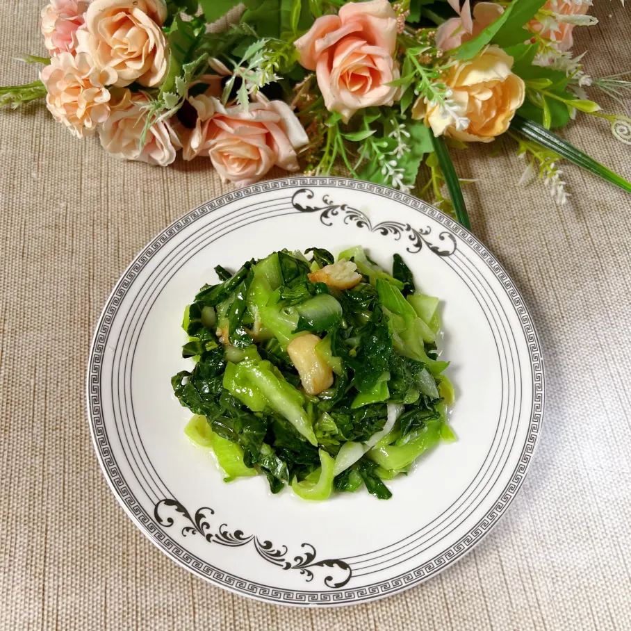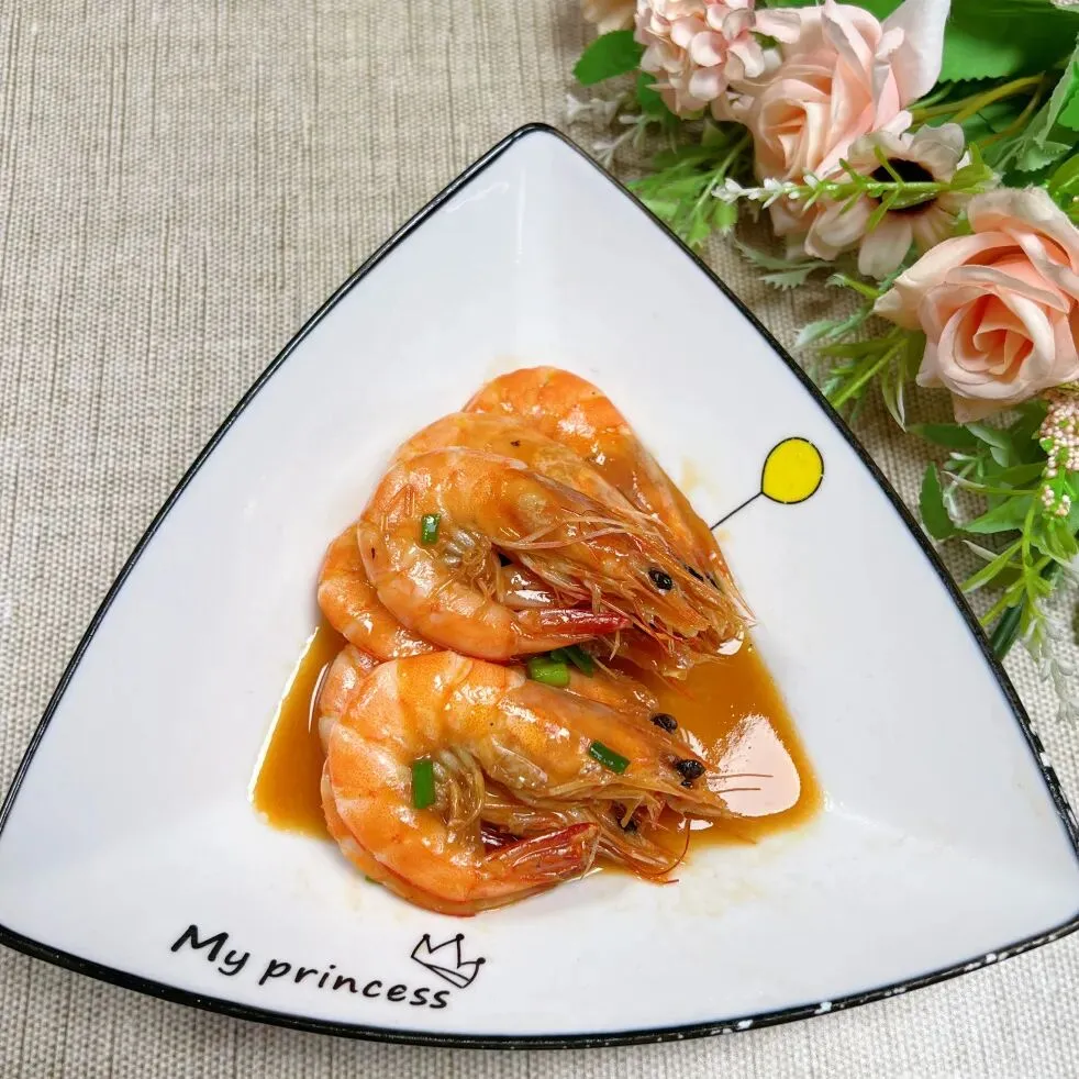蒜蓉大虾、腐竹焖肉、蒜蓉小白菜、木瓜红枣大骨汤、香米饭