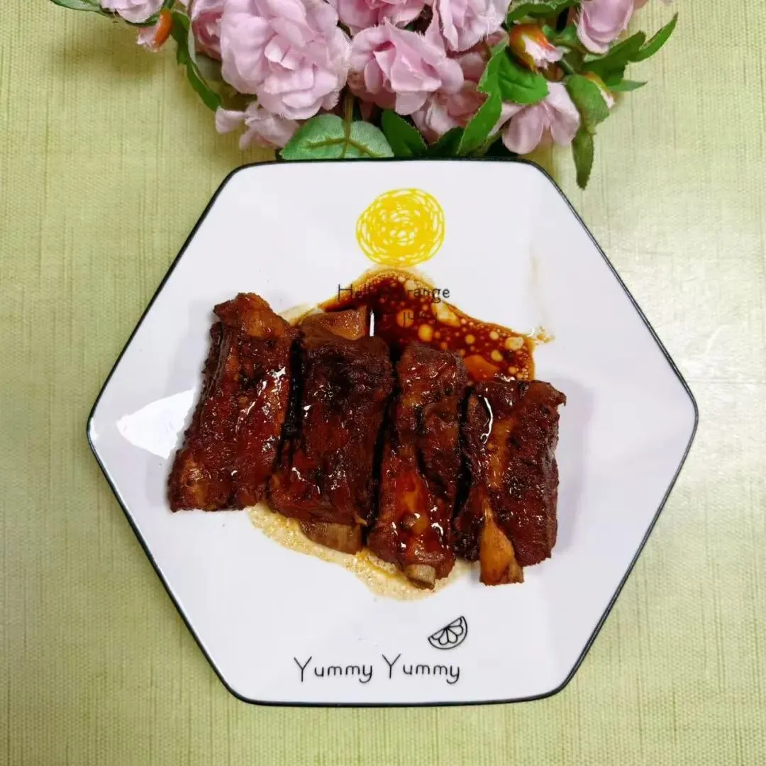 酱汁猪扒、虾仁焖冬瓜、蒜香娃娃菜、红萝卜玉米骨头汤、香米饭