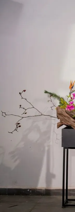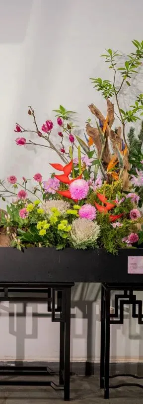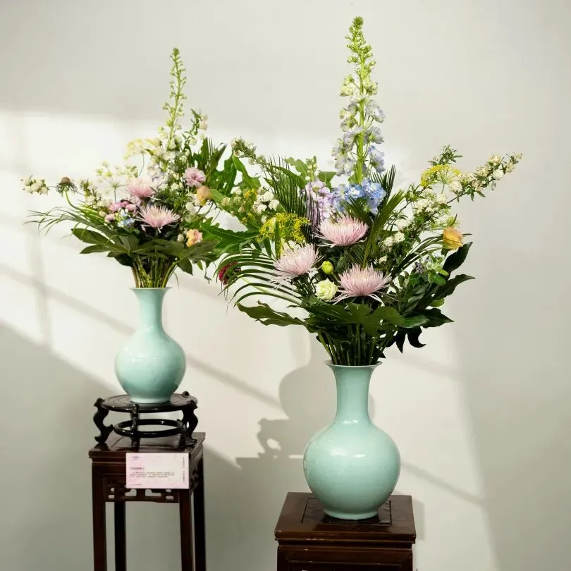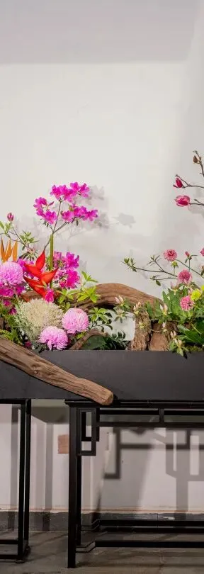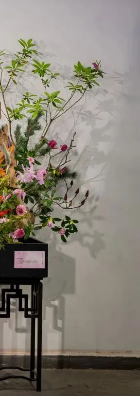 凤凰台内,是本次毛棉杜鹃花会的另一个重头戏——“花叙东方”传统插花作品系列展。这是花艺团队的同学们最“安静”的一次表达,也是最见功底的一次呈现。