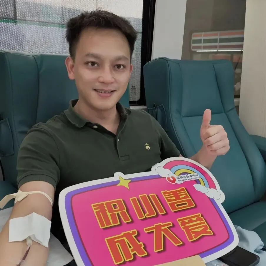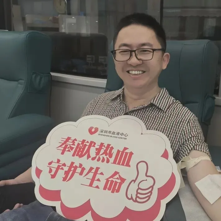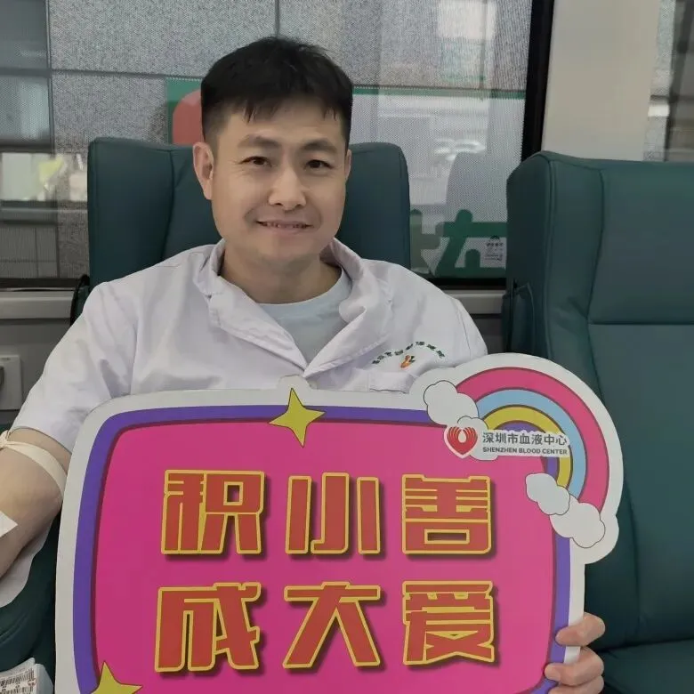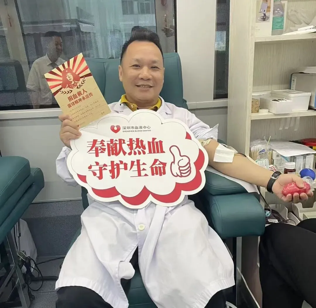 从南方医科大学委派我院不久的熊教授也参与了本次献血。这是他在深圳的首次献血。此前他在广州已有多次献血经历,此次延续这一公益习惯,他表示:“无论身处哪里,只要身体允许,就应该坚持把这件有意义的事情做下去。”