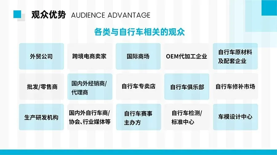 高端品牌、豪华自行车、复古自行车、越野自行车、郊游自行车、旅行用自行车、自行车旅行配件、自行车旅行交通系统、自行车旅行、自行车拖斗单速车及固定齿轮自行车、山地自行车、折叠自行车、城市公路自行车、儿童自行车、女士自行车、全地形自行车、越野自行车、泥地自行车、自行车设计/改装、概念自行车、智能自行车;