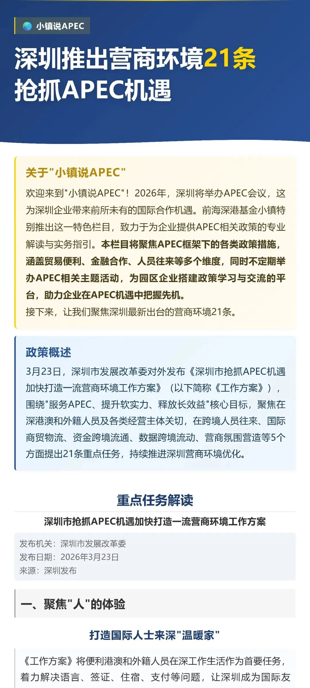 >小镇说APEC|深圳推出营商环境21条,抢抓APEC机遇