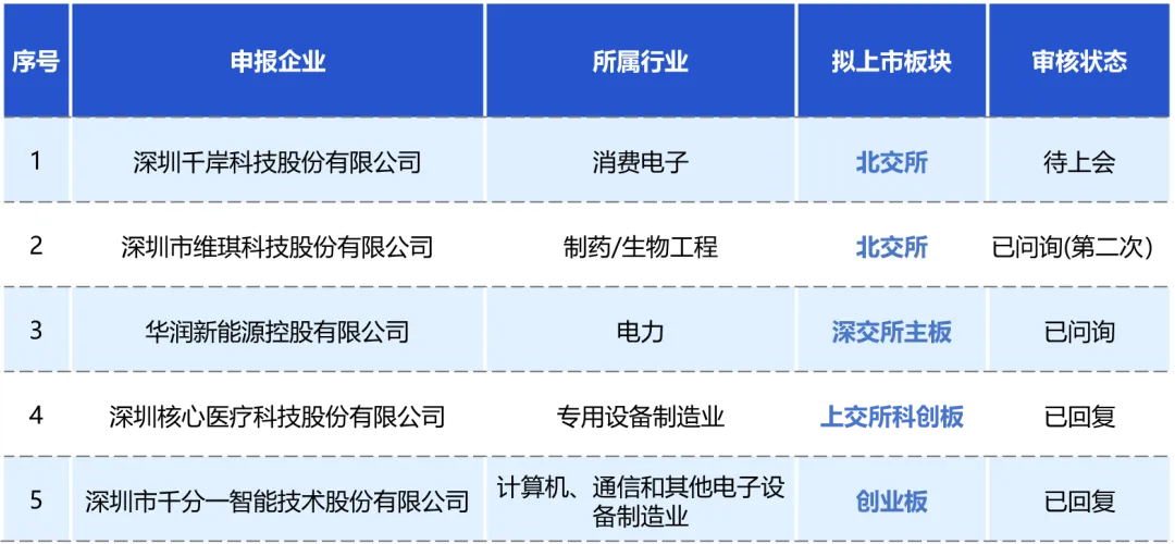 ● 深圳市IPO在审企业19家,其中南山区5家;