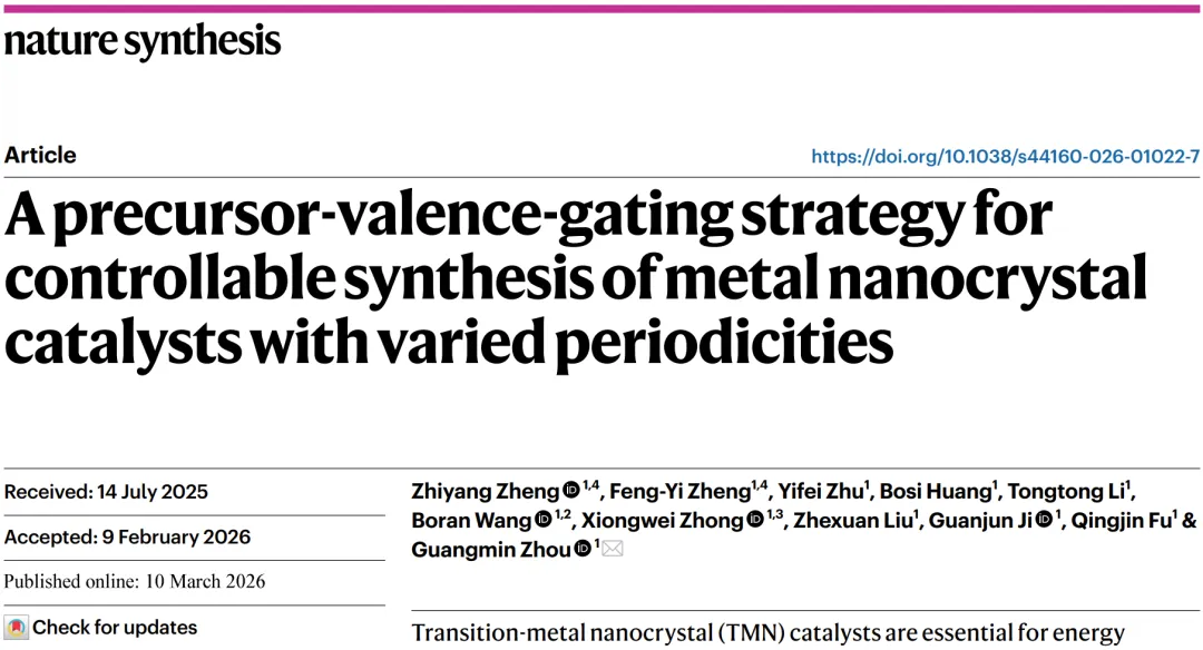 Zheng, Z., Zheng, FY., Zhu, Y.et al. A precursor-valence-gating strategy for controllable synthesis of metal nanocrystal catalysts with varied periodicities. Nat. Synth (2026). https://doi.org/10.1038/s44160-026-01022-7