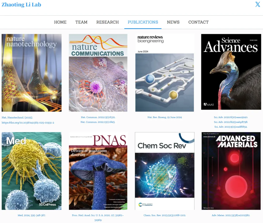 李昭廷老师现任香港中文大学(深圳)医学细胞药物制剂课题组组长(PI/博导),近3年主持国家省市级自然科学基金等项目6项,指导课题组博士后获得国家省市级基金项目7项。李老师专注于工程化细胞药物制剂的开发和应用,近年以第一或通讯作者身份在Nature Nanotechnology, Nature Reviews Bioengineering, Nature Communications, Med (Cell Press), Cell Biomaterials, Trends in Pharmacological Sciences, Science Advances, PNAS, Chemical Society Reviews, Advanced Materials等领域内重要学术期刊上发表SCI论文20余篇(其中CNS子刊8篇),研究被Nature Reviews Drug Discovery, Nature Immunology, Nature Cancer, Nature Reviews Materials, Cancer Cell等杂志引用报道,并入选Nature Communications Editors’ Highlights。