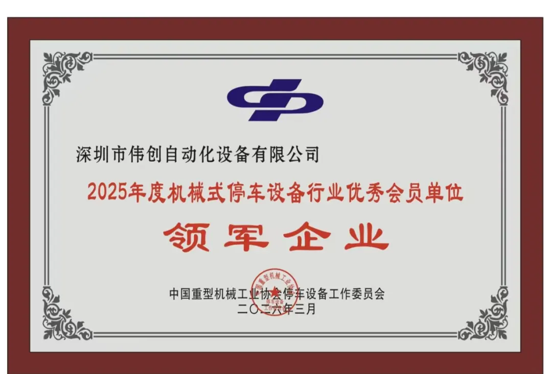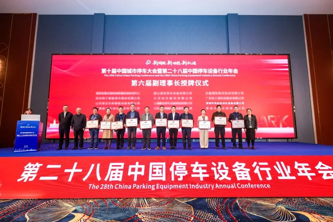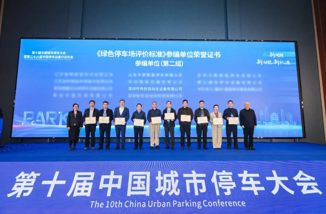凭借三十余年深耕积淀、行业领先的技术实力、稳健卓越的市场业绩及有口皆碑的品牌影响力,深圳伟创在大会中脱颖而出,一举摘得多项重磅荣誉:再度荣膺 “行业领军企业” 称号,成功蝉联中国停车行业协会第六届副理事长单位,并正式入选 《绿色停车场(库)评价标准》参编单位 。