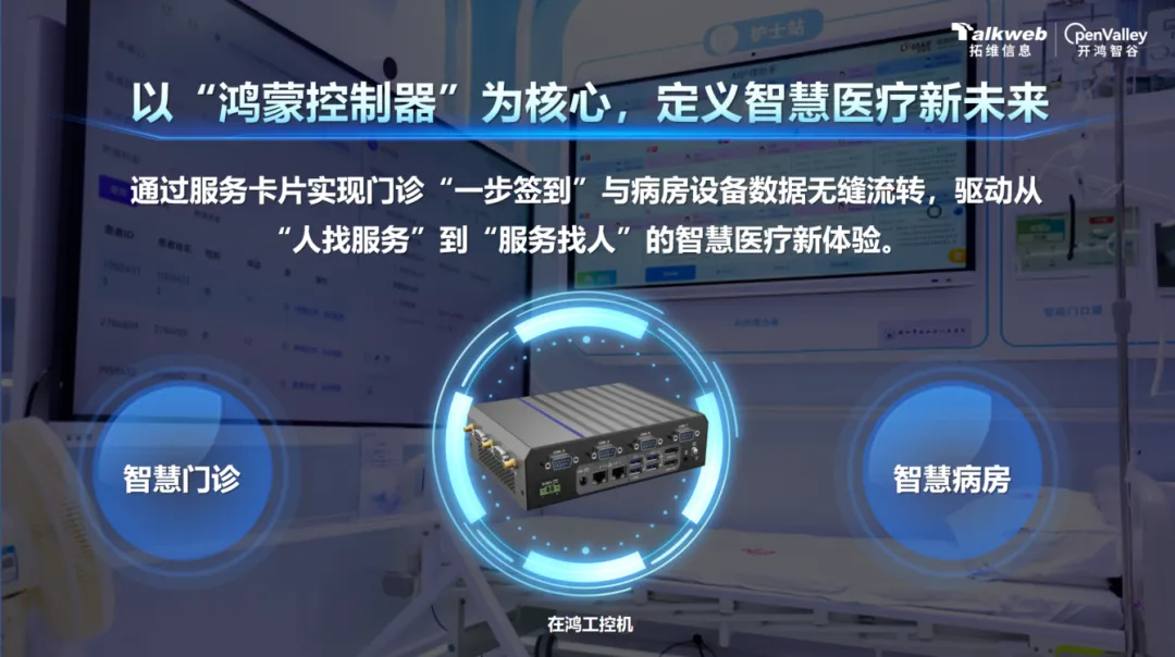 支撑全场景落地的核心硬件,是开鸿智谷在鸿感知与控制系列产品,由在鸿工控机、在鸿物联网关、在鸿IO控制器共同构成医疗鸿蒙国产化智能底座。其中在鸿工控机搭载瑞芯微工规级芯片,算力达6TOPS,具备强大的本地算力与AI处理能力,可稳定支撑手术室、智慧病区等复杂医疗场景的实时运算与多任务并发,保障医疗设备长期可靠运行。