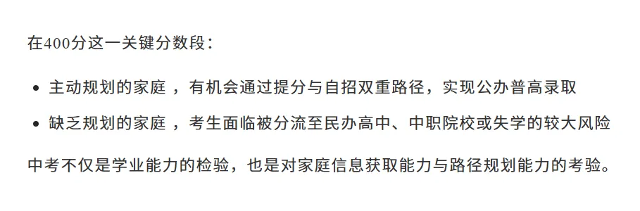 深圳初三400分左右考生注意!可捡漏公办高中的升学路径解读!中考!深户差70分,非深户差100分!这样理性规划可以避免滑档!