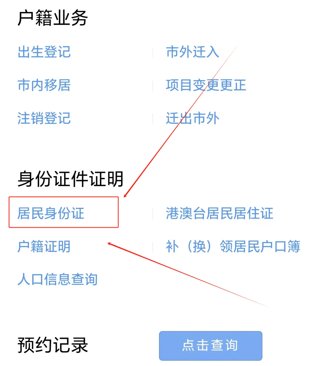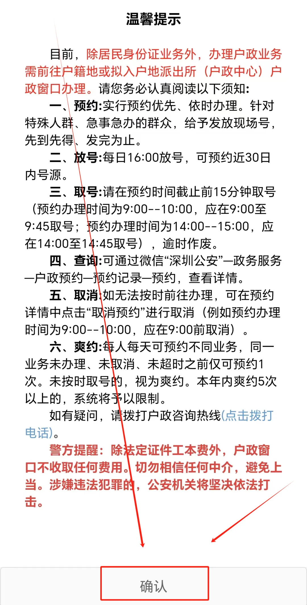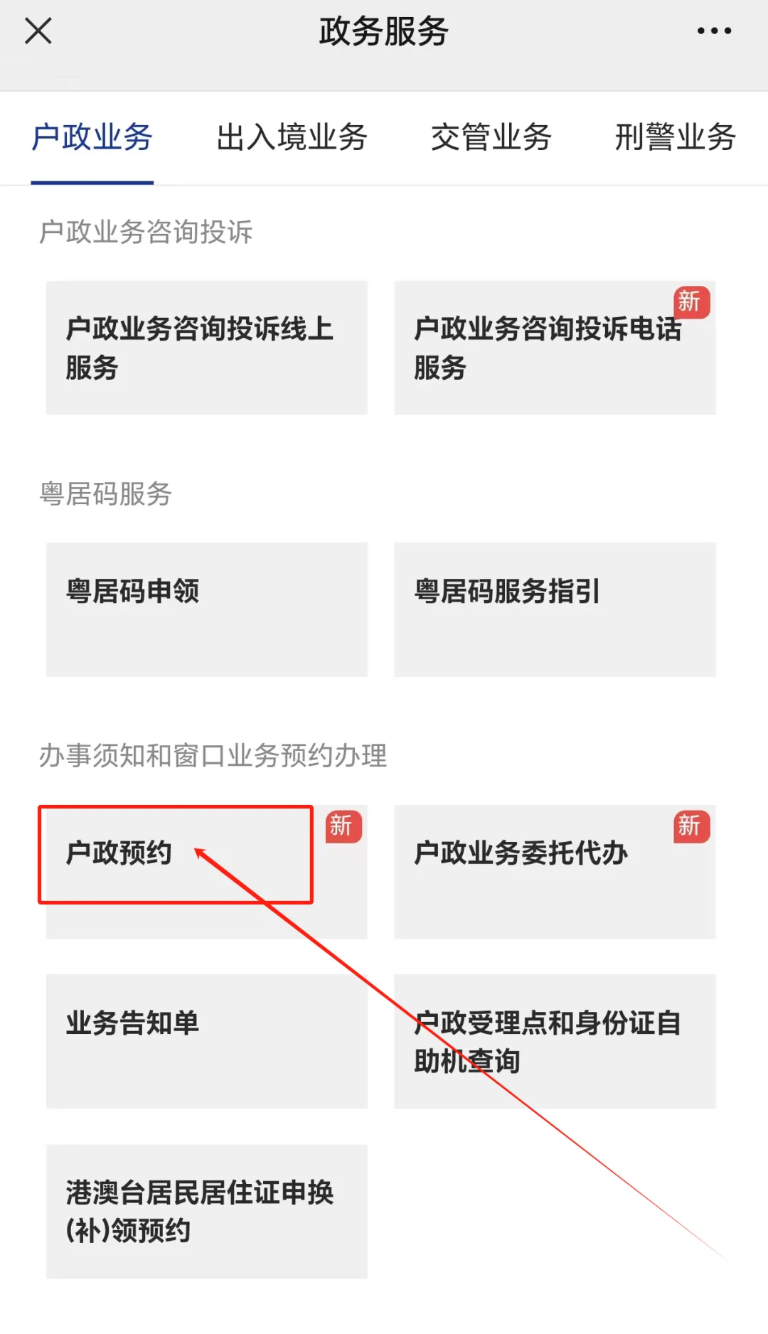 点击入口进入系统后,请往下滑,找到办事须知和窗口业务预约办理,如下图所示点击户政预约