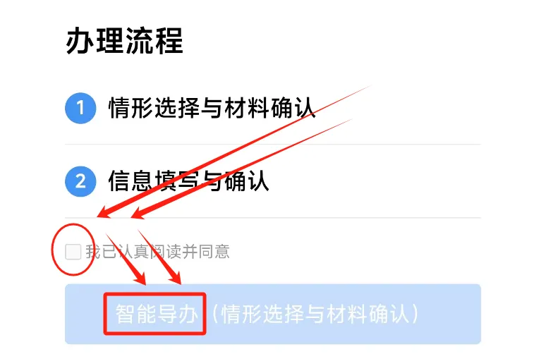 勾选我已认真阅读并同意,然后点击智能导办