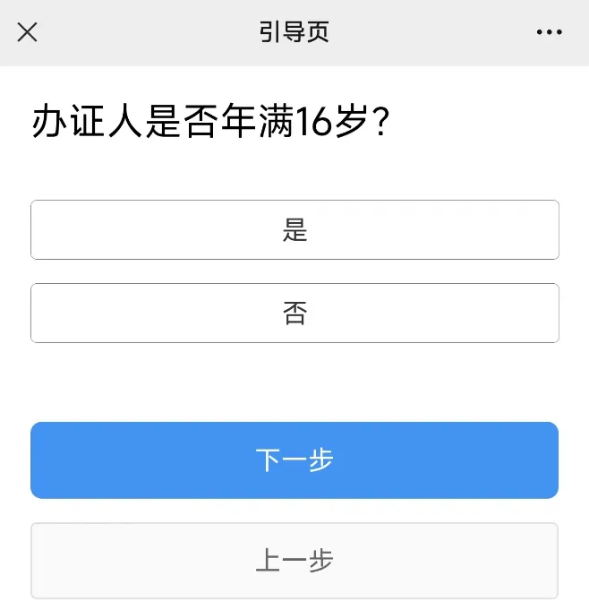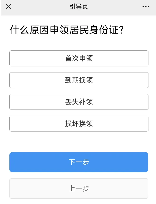 选择办理的原因,然后点击下一步,点击否,然后点击下一步