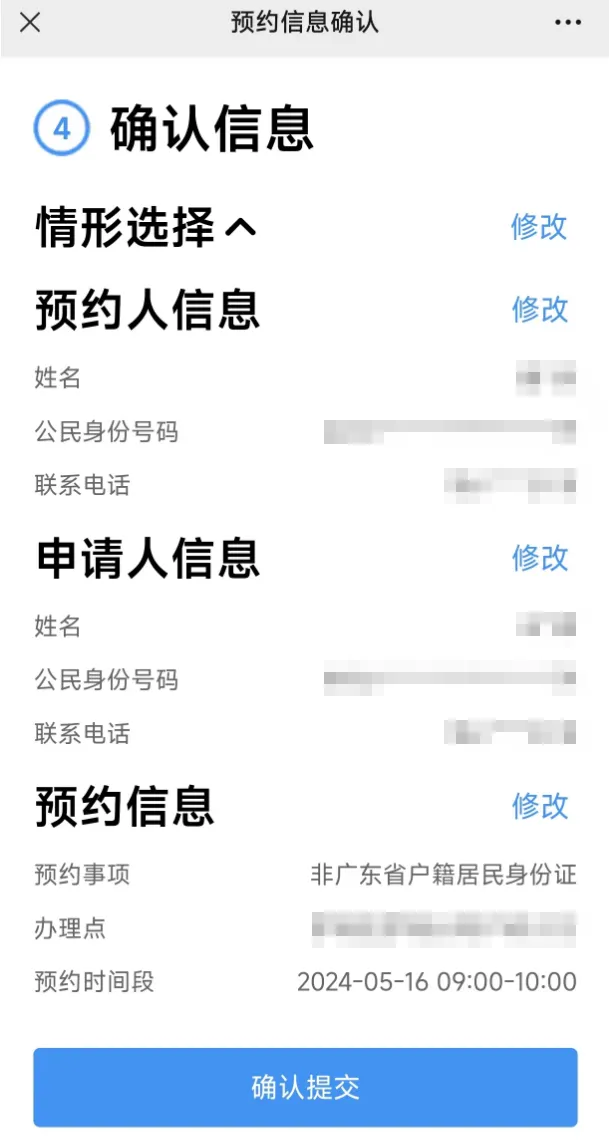 确认信息是否填写正确,如果有问题要马上修改,然后点击确认提交,即可完成预约