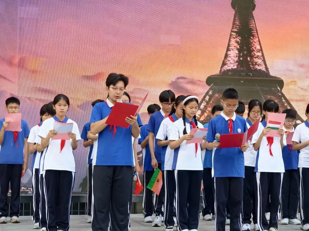 展演中,队员们以“各美其美,美人之美”的胸怀,诠释着对多元文化的尊重与热爱,表达了愿做和平使者、拥抱世界的美好期许。最后,他们以青春之名发出宣言,要在学习中拓宽视野,为与世界对话积蓄力量,用激情与梦想奔赴未来。
