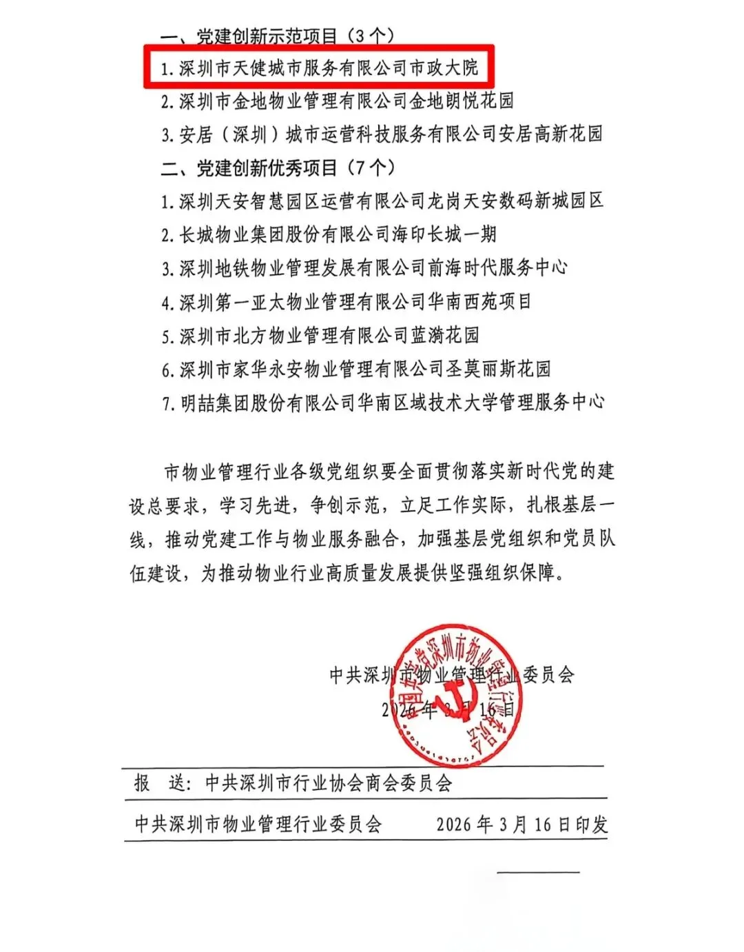 在市政大院“双标杆”的成熟经验上,天健城市服务公司将以此为支点,撬动更大范围的党建引领基层治理革新,推动模式向全国项目延伸。让“城市红心”党建服务品牌的红色火焰持续燎原,不仅点亮更多小区的焕新之路,也能转化为推动城市更新与基层治理现代化的恒久动力,让“住有宜居”的幸福图景照亮更多家庭。
