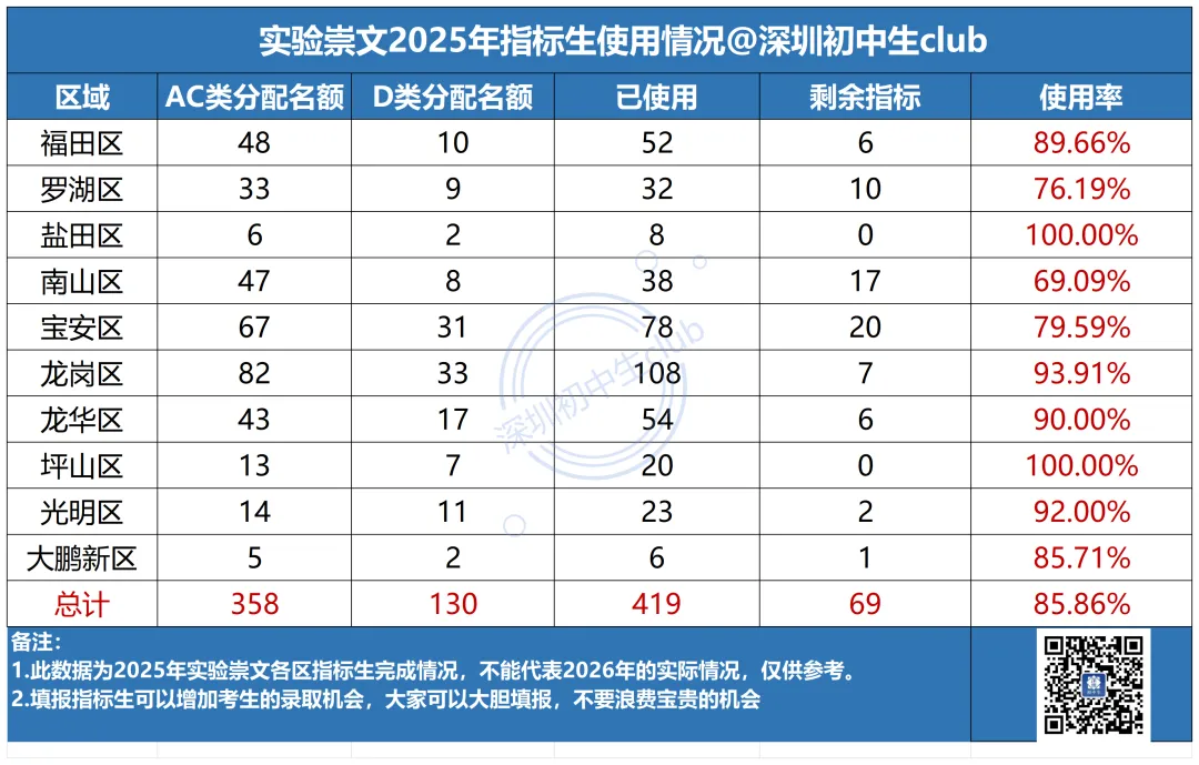 2.实验崇文2025年深圳中考指标生整体使用率85.86%