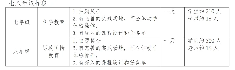 7.社会实践突出研学性质,制定具体的研学方案,学生人手一册研学任务单,要求版画设计美观正向,任务单要含研学目标、研学路线、研学背景、研学任务、学习成果、延伸拓展、研学评价等内容。国防教育方案内容要有队列队形的展示和汇报环节。