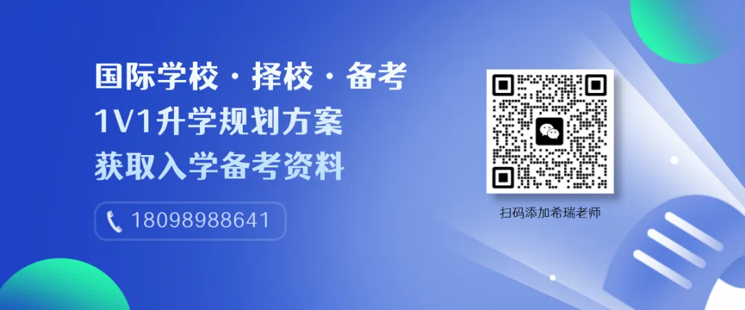 如果您还在为孩子筛选合适的国际学校,可添加希瑞老师,给您安排一对一择校咨询以及VIP探校通道!