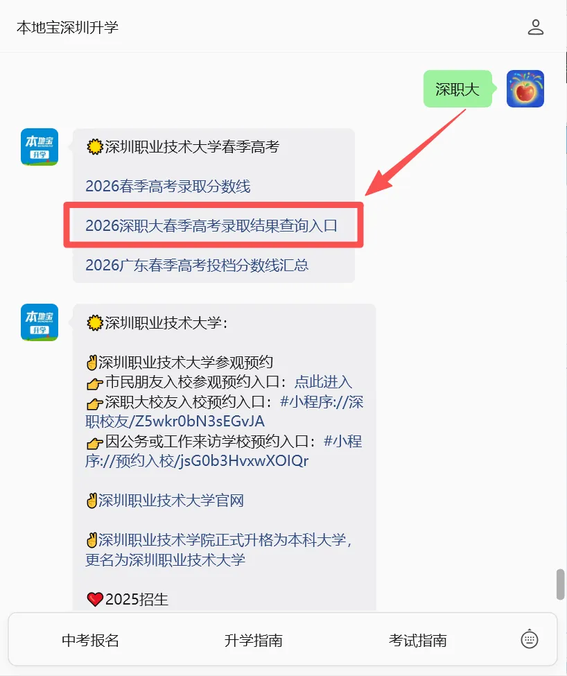 在“深圳职业技术大学招生”公众号