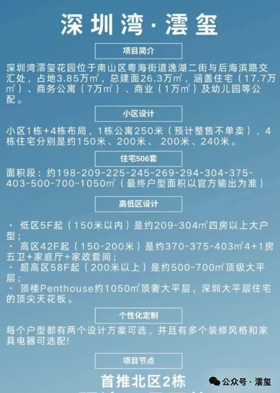 - 超高区(自58层起,建筑高度200米以上):匠心打造约500—700㎡顶奢大平层产品;