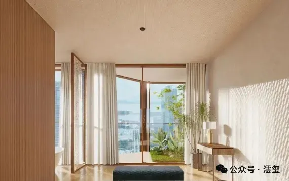在建筑立面创新设计上,项目并未沿用深圳湾高端住宅普遍使用石材的常规做法,而是创新性地选用超白双银Low-E全玻璃幕墙系统。这种材料不仅让建筑外观通透轻盈,与滨海景观自然相融,使居者能够沉浸式感受一线海景,更具备优异的实用性能:可有效阻隔超90%的紫外线,同时具备良好的隔热与降噪能力,真正实现了建筑美学与居住品质的有机融合。