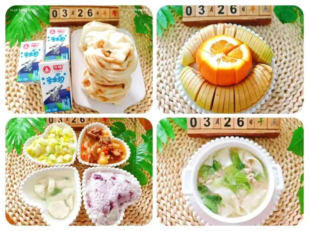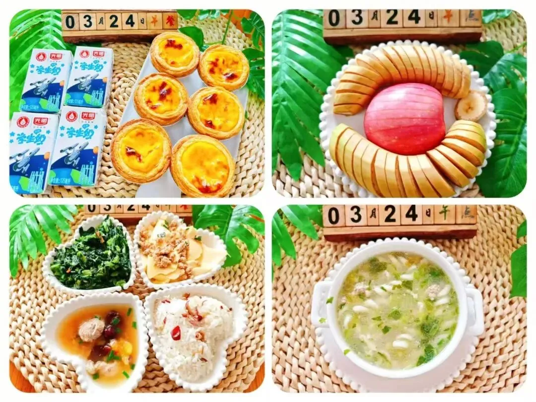 1.建议家长朋友结合在园食谱,合理安排晚餐。