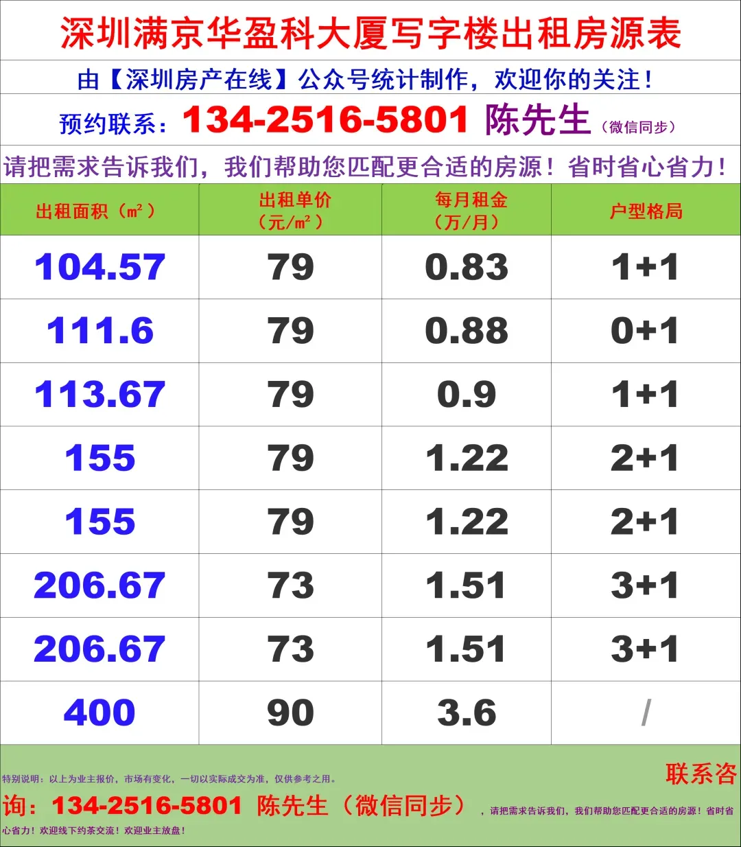 特别说明:市场有变化,以上房源数据仅供参考之用,一切以实际成交数据为准,预约看房敬请联系:【深圳房产在线】陈经理团队:134-2516-5801(微信同步)1对1VIP全程带看服务