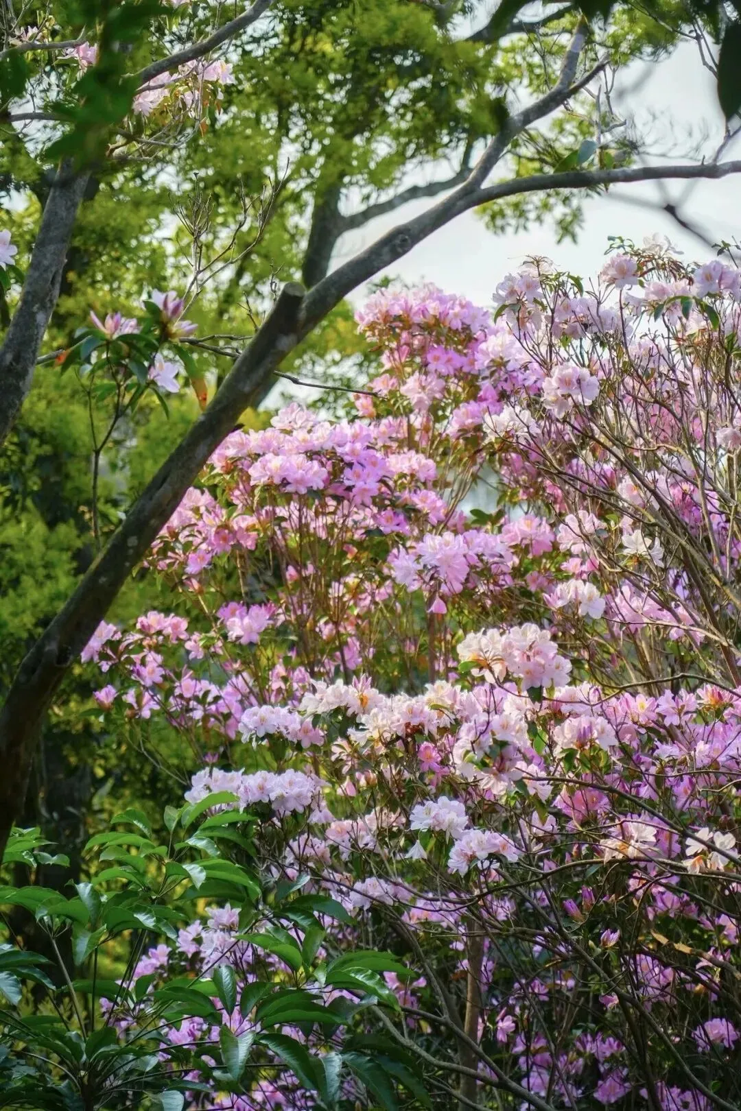 电视塔旁便是杜鹃谷入口,恰逢梧桐山春花游活动,步入谷底,漫山毛棉杜鹃开得正盛,姹紫嫣红、层层叠叠,一眼惊艳。游人如织,留连忘返。