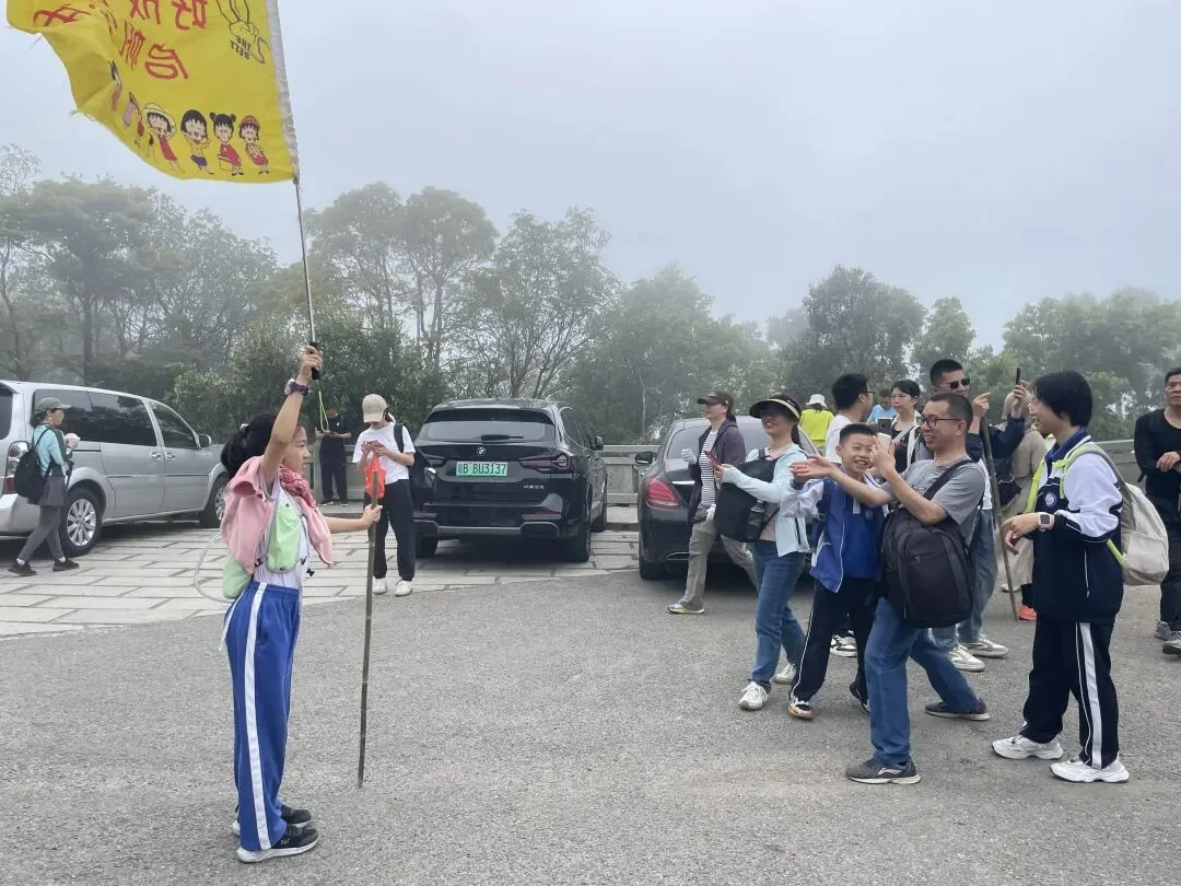 近几年春日,好成长户外亲子俱乐部都会如约奔赴梧桐山,赴一场杜鹃之约,打卡小梧桐杜鹃谷的高山乔木毛棉杜鹃,邂逅十里杜鹃的映山红与锦绣杜鹃。3月21日,好成长2026毛棉杜鹃之约如期而至。一行40余人,浩浩荡荡在梧桐山南地铁站集结出发,沿水泥绿道前行至凌云道登山口。小小旗手一马当先,陡峭台阶也轻松攀登,山间云雾缭绕,登顶小梧桐时,电视塔在薄雾中若隐若现,宛若仙境。