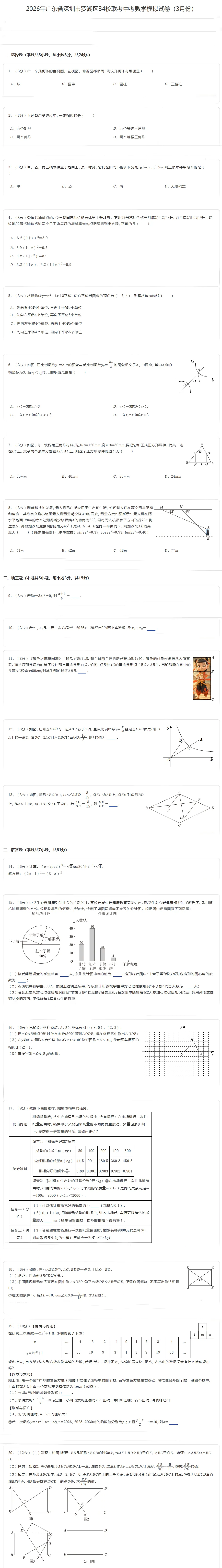 2026学年深圳市罗湖区34校联考中考数学模拟试题(3月份)