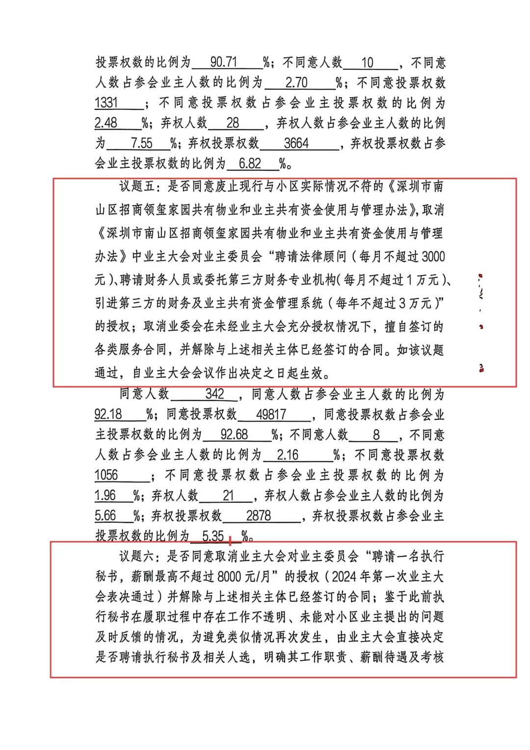 - 废除全部业主大会合法通过的对业委会的授权,包括法定允许的聘请执行秘书、财务工作人员等权限,让小区物业服务的监督机构——业委会——彻底丧失功能。