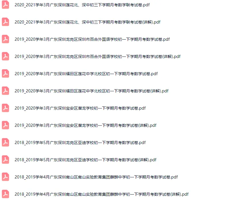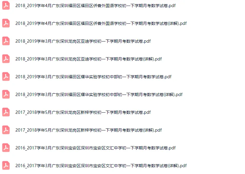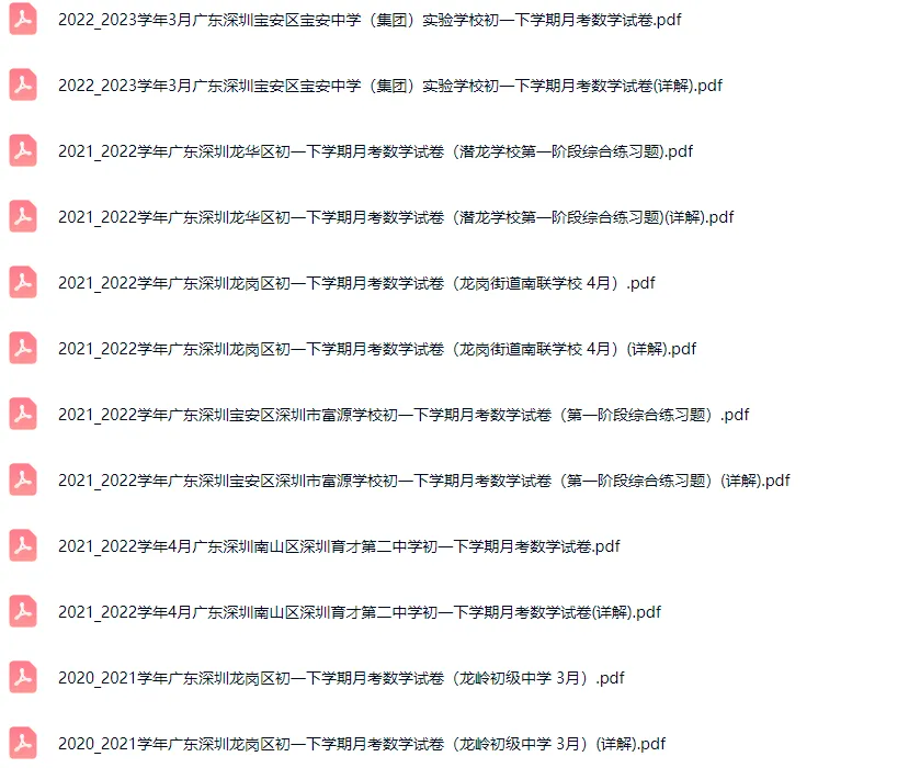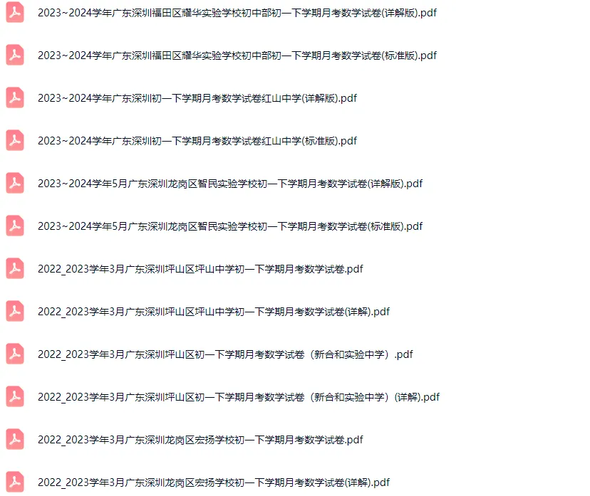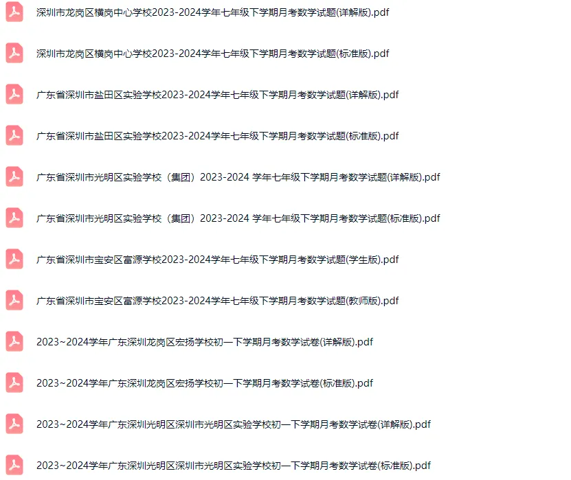 >58套2016-2024学年深圳各区初一下学期月考数学真题及答案解析
