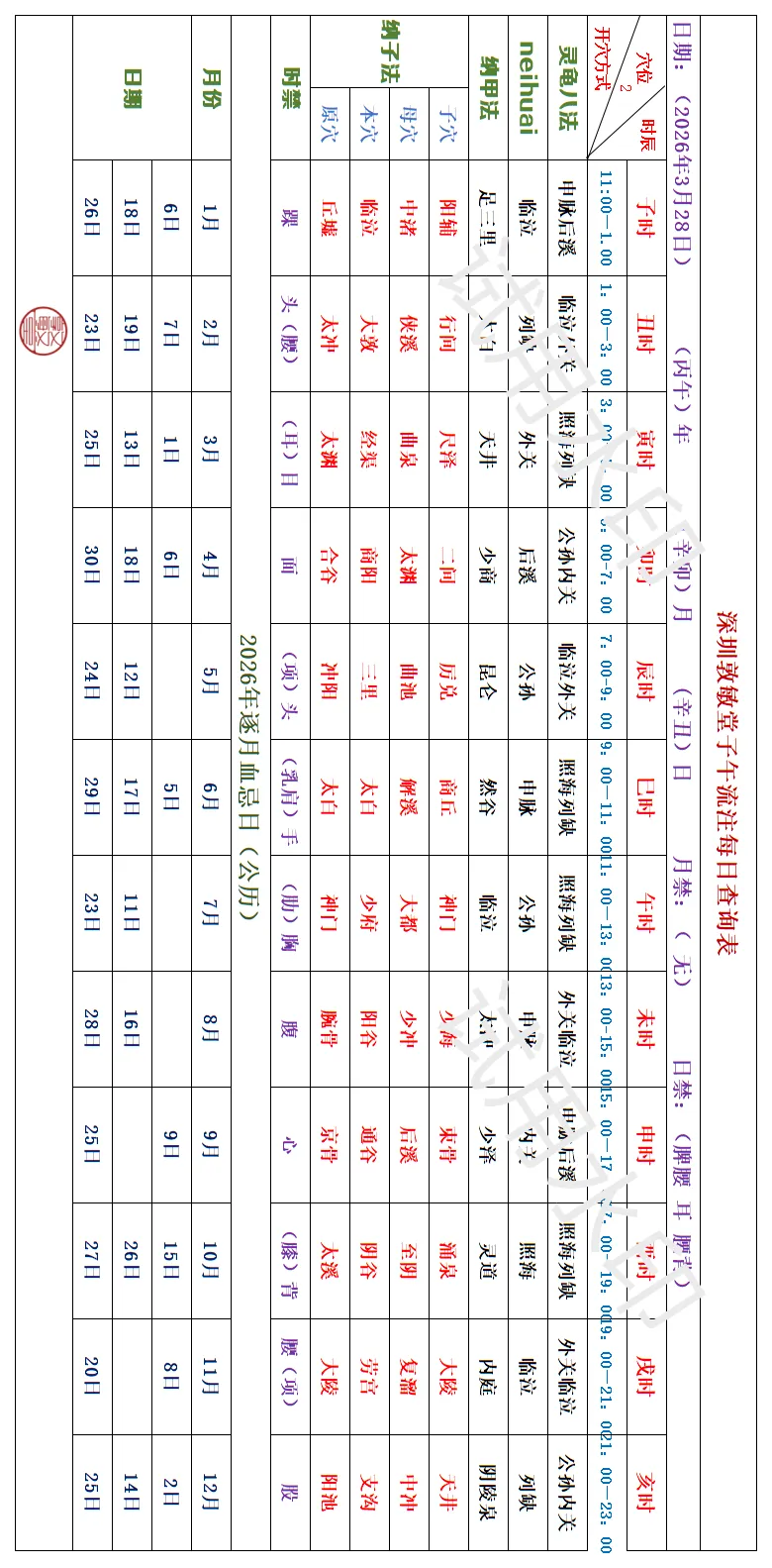 深圳敦敏堂《子午流注:今日开穴》 2026 3月28日