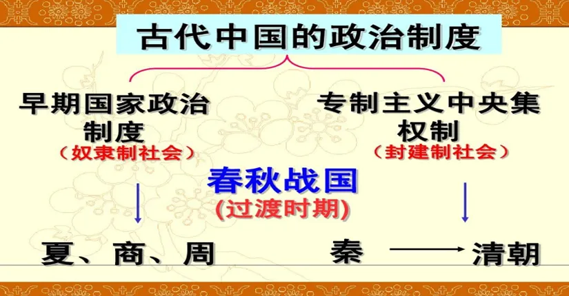 中国古代政治制度的突出特点是中央集权不断强化,主要体现在君权与相权、中央集权与地方分权的斗争。中国古代君主专制加强主要表现在:调整中央机构、加强对地方的控制、注重对官吏的监察和选拔、加强思想控制等方面。