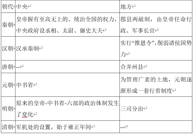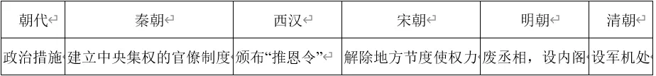 25. 中国自古以来形成了一整套国家制度和治理体系。下表反映了我国古代国家治理的趋势是( )
