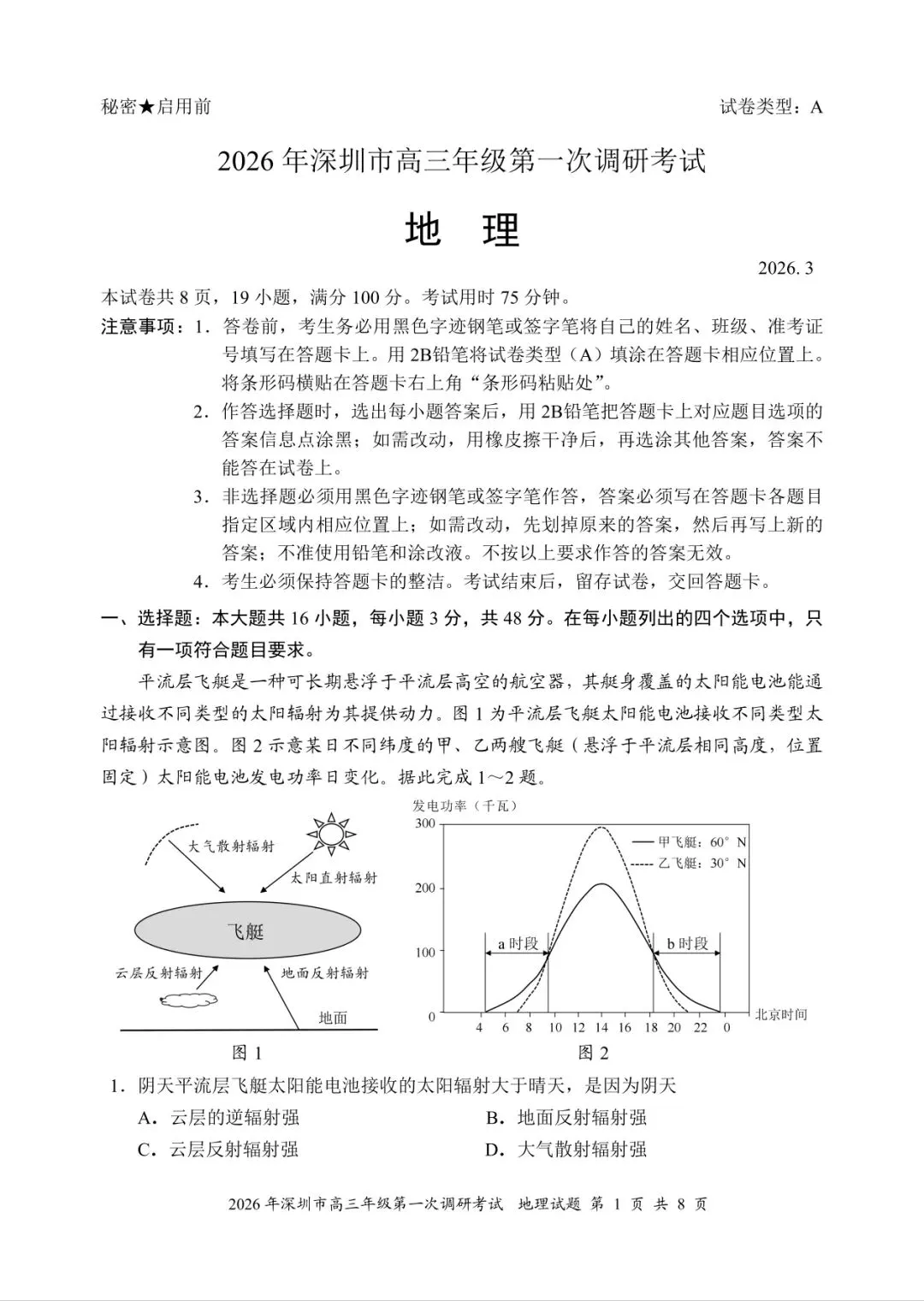 【一模试题】2026年福建省福州市高三一模地理试题与答案