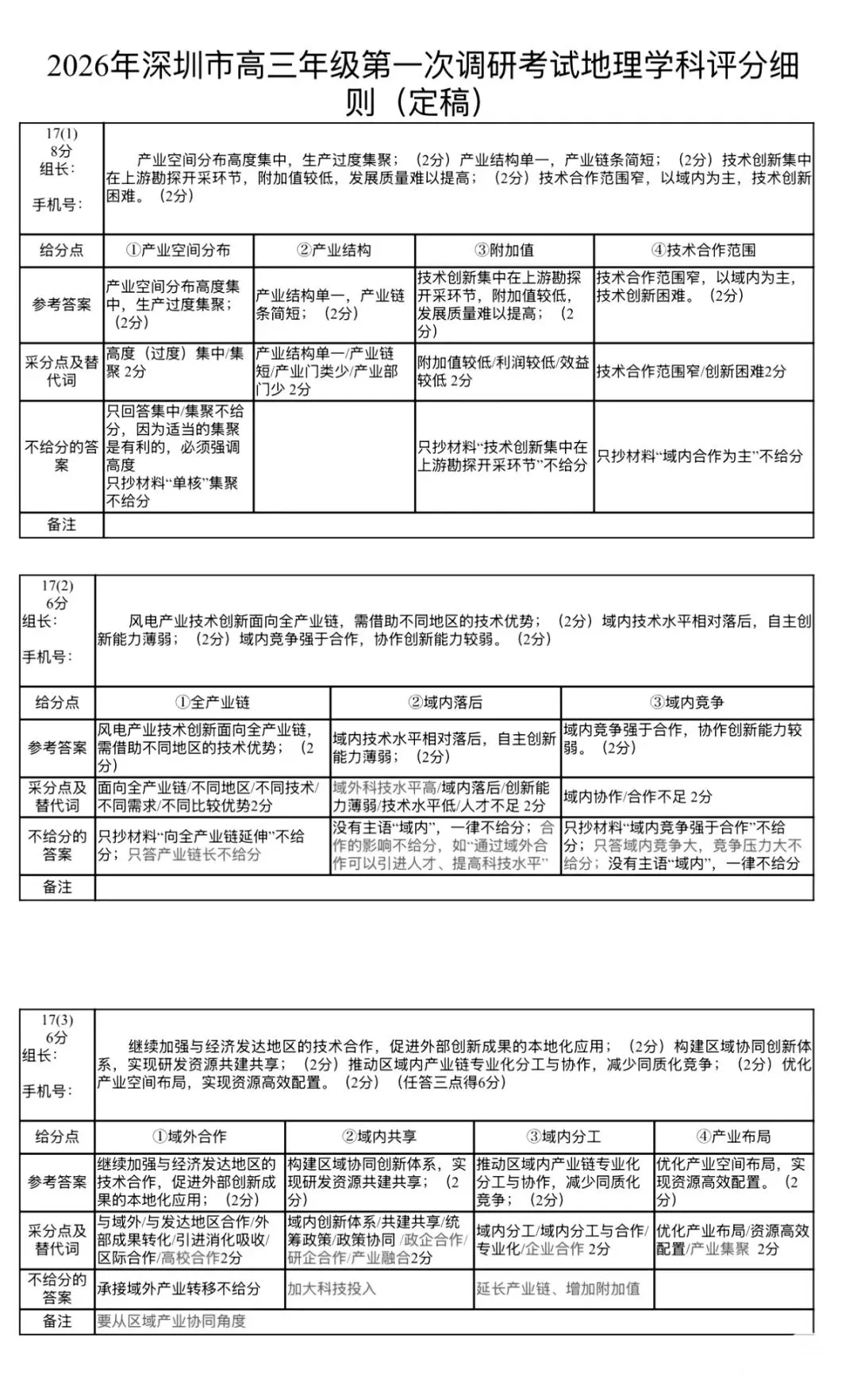 【一模试题】2025年潍坊高三一模地理试题综合题评分细则