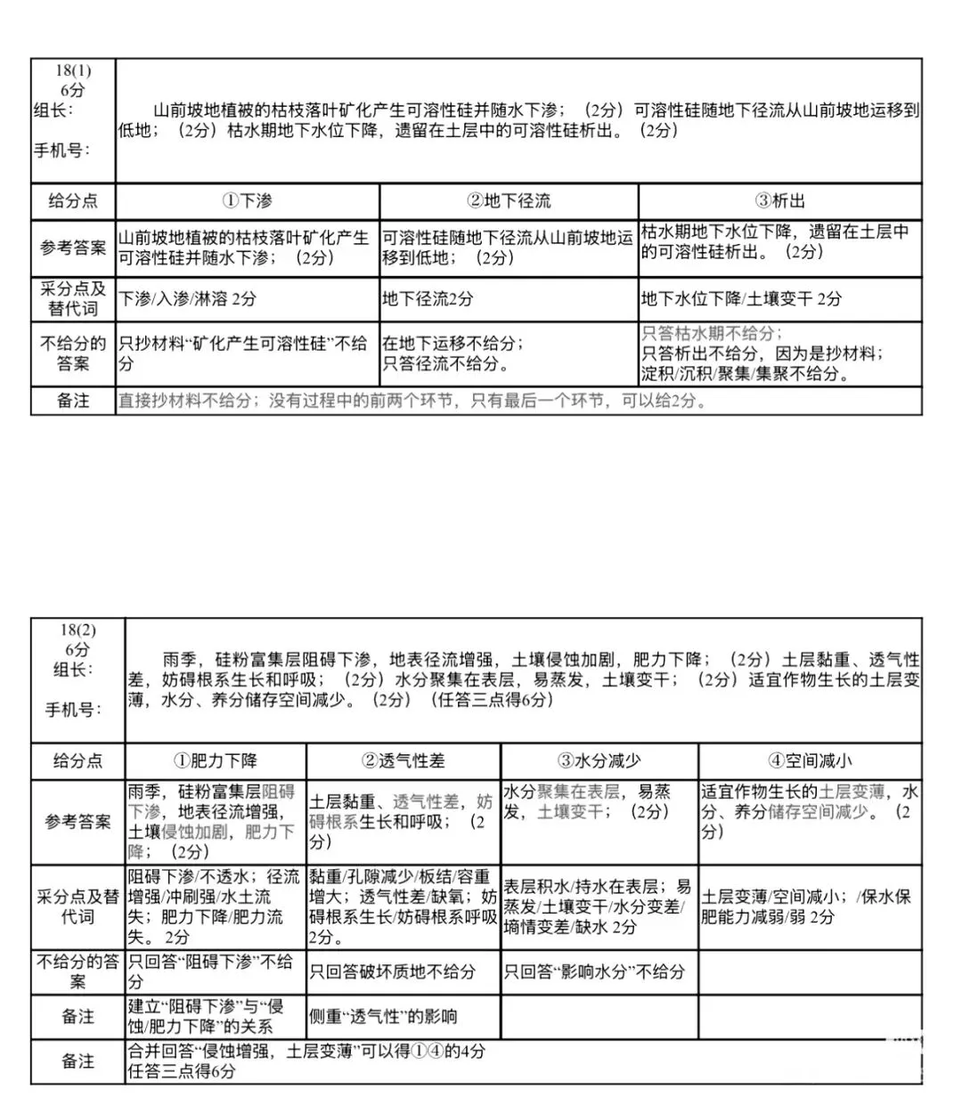 (2)(6分)雨季,硅粉富集层阻碍下渗,地表径流增强,土壤侵蚀加剧,肥力下降;(2分)土层黏重,造气性差,妨碍根系生长和呼吸;(2分)水分聚集在表层,易蒸发,土壤灾干;(2分)适宜作物生长的土层变薄,水分,养分储存空间减少。(2分)(任答三点得6分) 19.(20分)