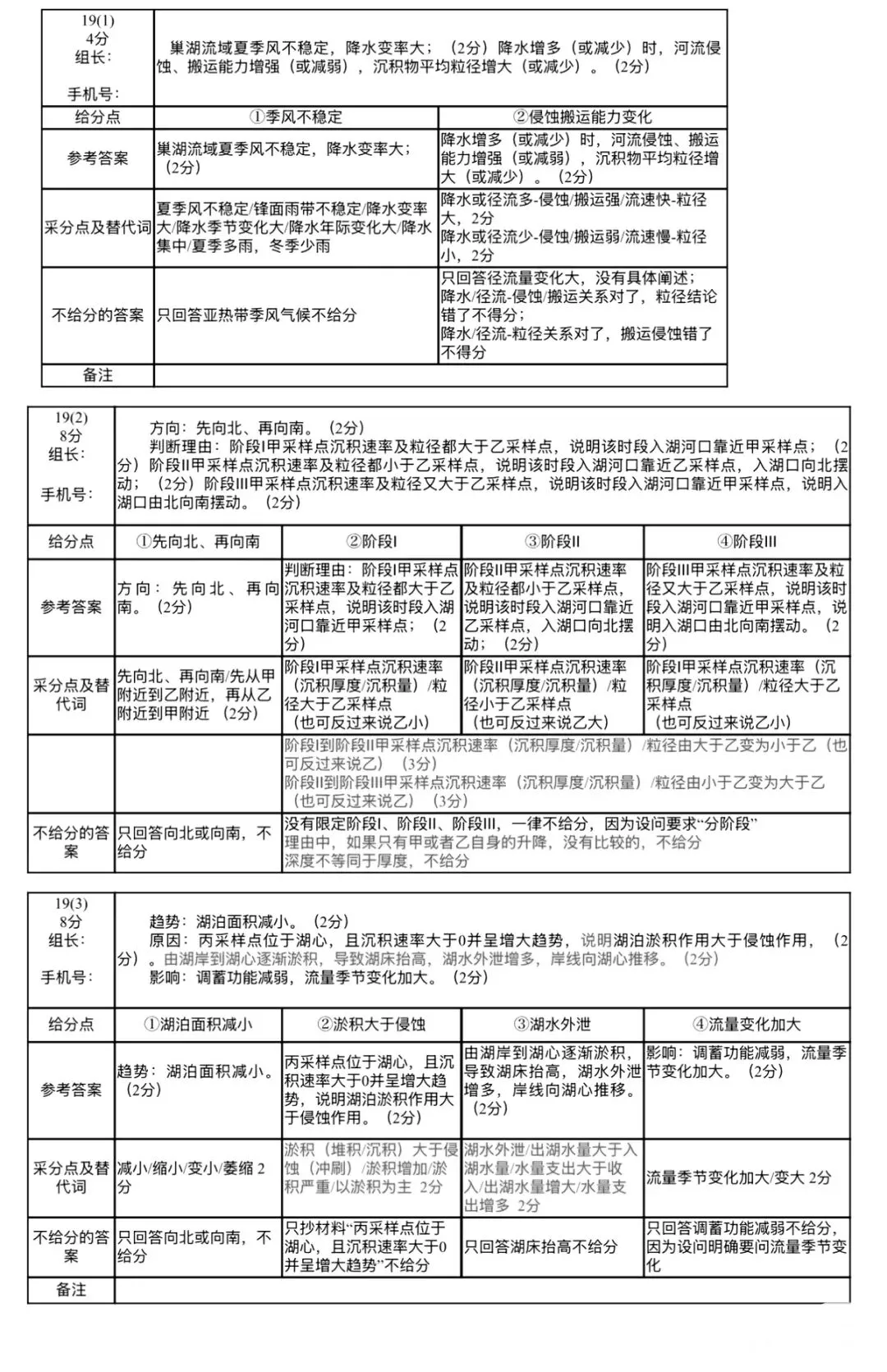 (1)(4分)巢湖流域受季风气候影响,降水变率大;(2分)降水实增(或突减)时,河流侵蚀,搬运能力增强(或减弱),沉积物平均粒径增大(或减少)。(2分)