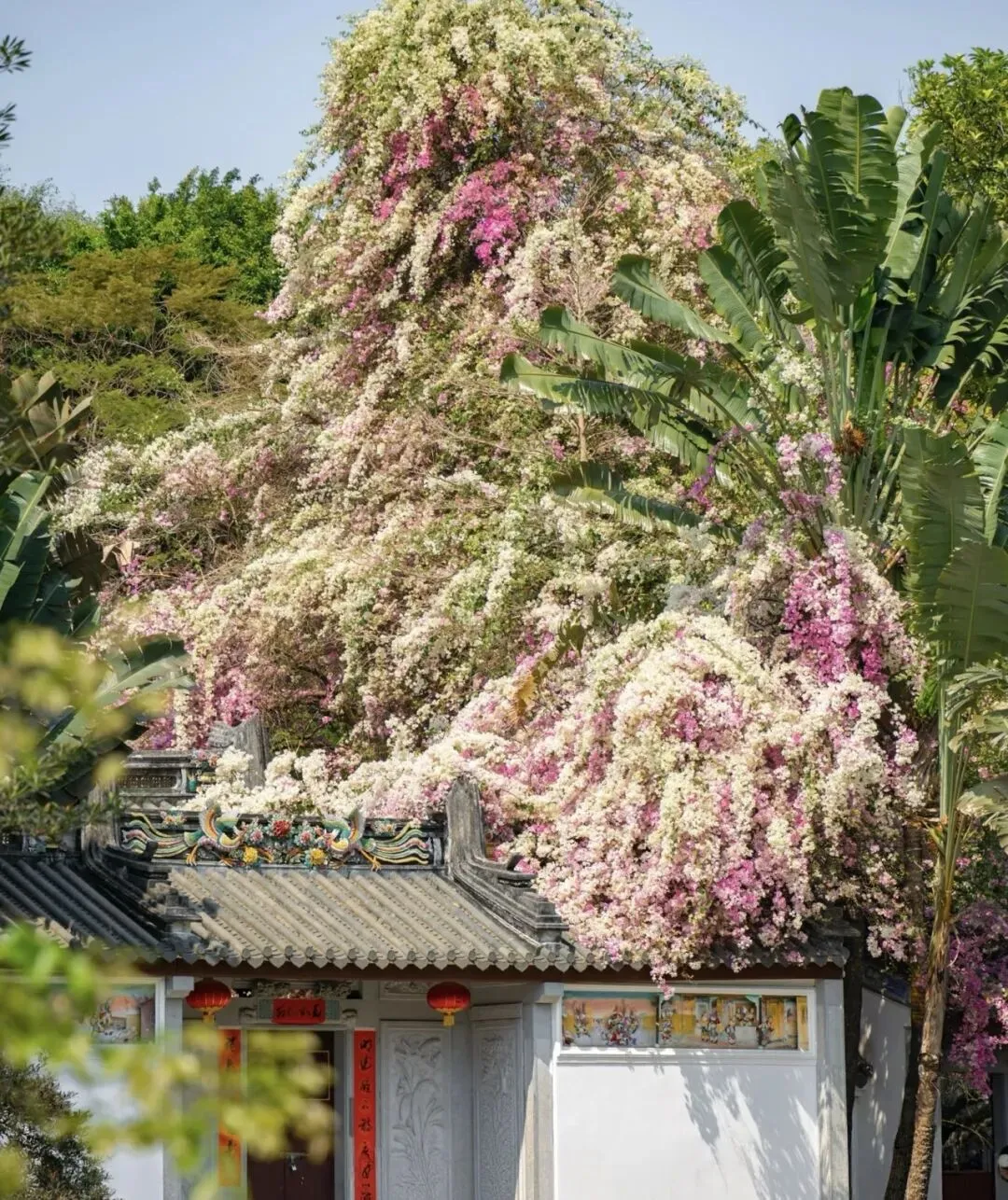 在深圳这座快节奏的繁华都市,竟能邂逅这样一处江南感拉满的小天地。白墙黛瓦衬着开得热烈的三角梅,青灰石阶旁繁花簇拥,走一步美一景,恍惚间像闯进了水墨江南,温柔到戳心巴,所有的疲惫和不开心,都被这片花海治愈了!