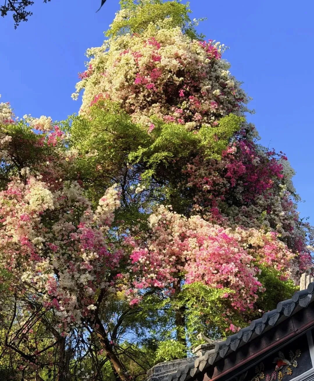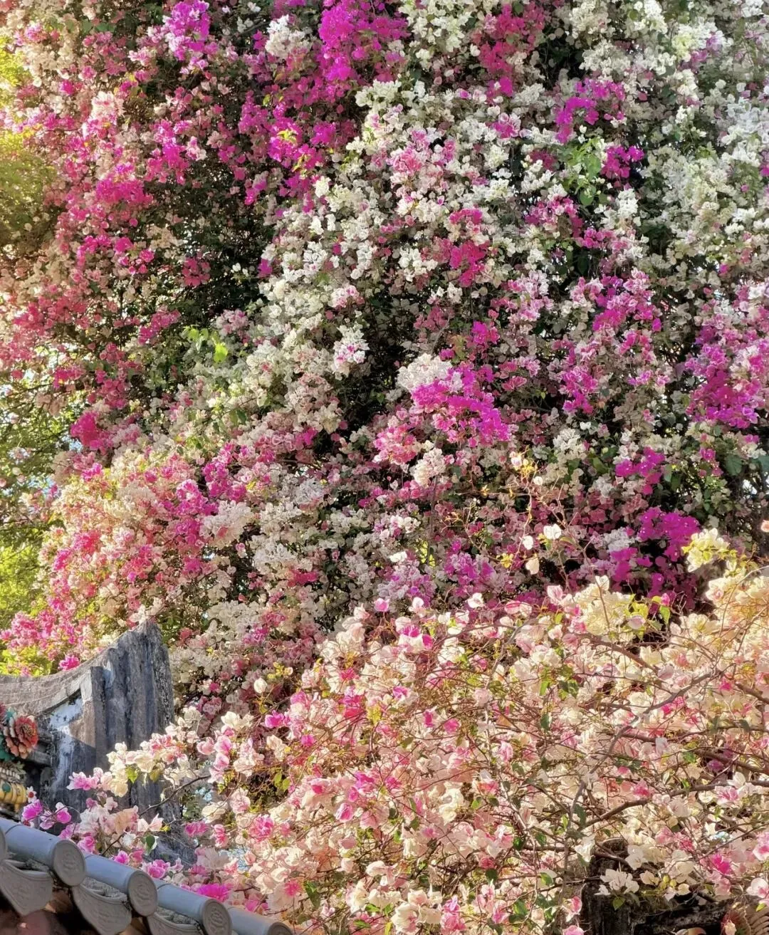 谁懂啊!深圳闹市藏着的春日浪漫天花板,被园博园汇芳园的三角梅狠狠拿捏了!十几米长的花枝顺着古建飞檐翘角倾泻而下,粉白似揉碎的奶糕,玫红如漫染的晚霞,层层叠叠缠成花帘,风一吹,花瓣轻晃,花香萦绕,直接把春日温柔焊在眼前!
