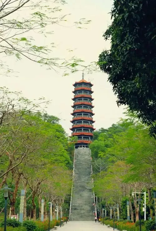 红花山公园台阶不算狠,顶上风把头发吹乱,拍照像换了发型,