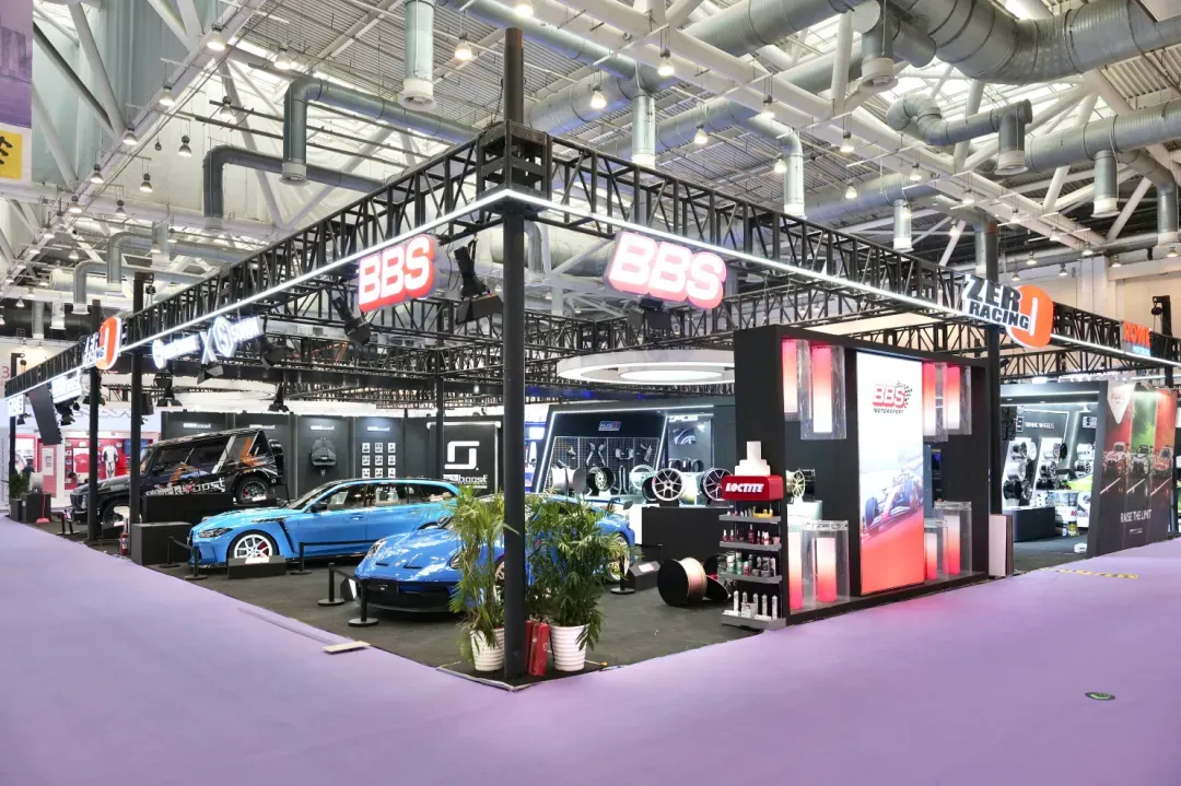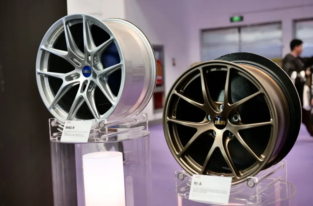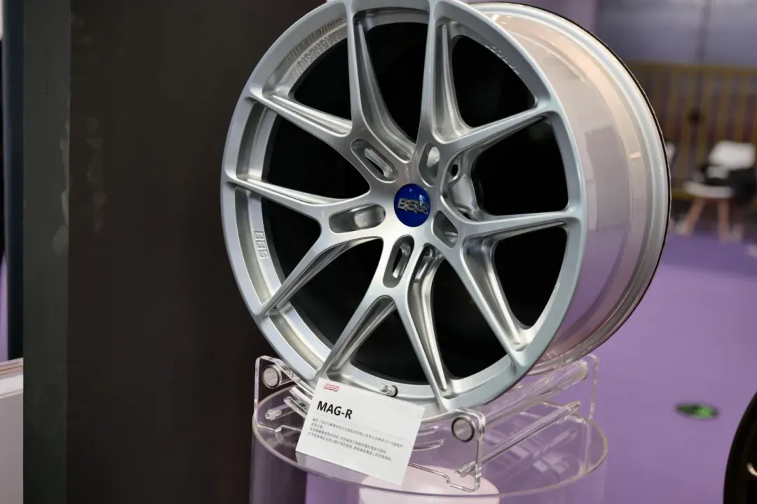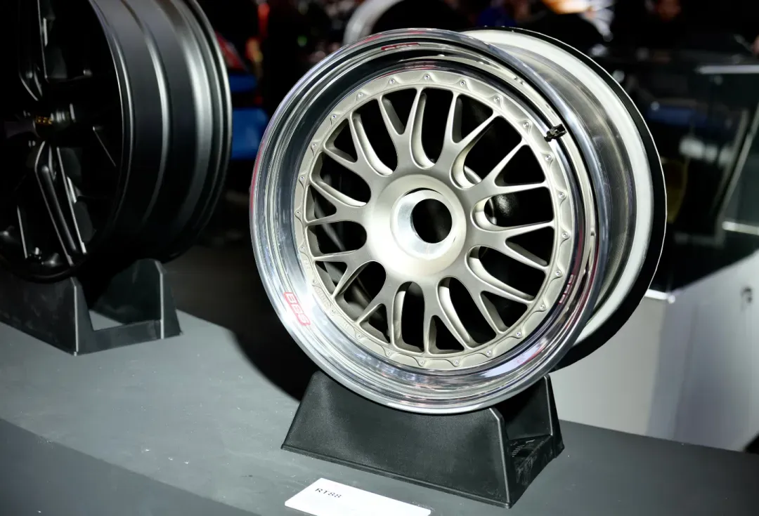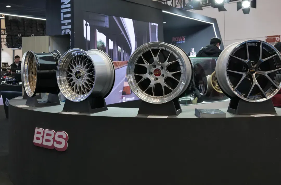 该展区展示了BBS FORGED几乎完整的各型号展品,其中值得关注的是以镁合金材质锻造的BBS MAG-R,该型号也是继今年东京改装展后,全球范围内第二次实物展出。此外,新加入量产序列的两片式RT88同样值得关注,而针对新能源及SUV车型开发的FL型号新增22寸数据,也在现场一台大G脚下进行展示。