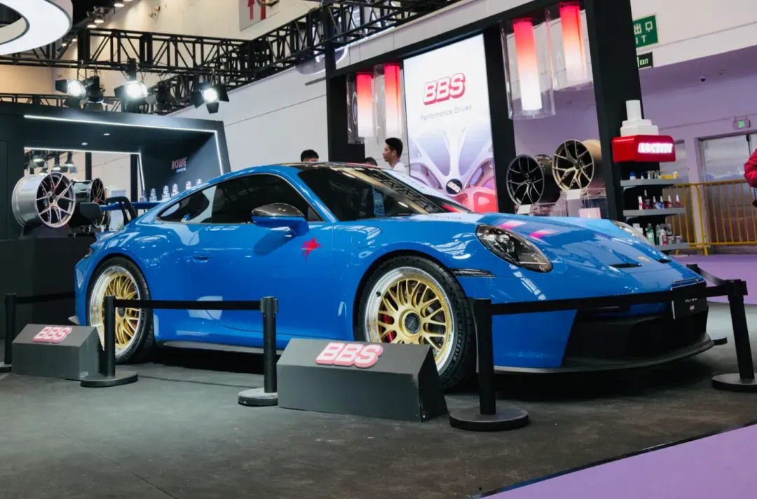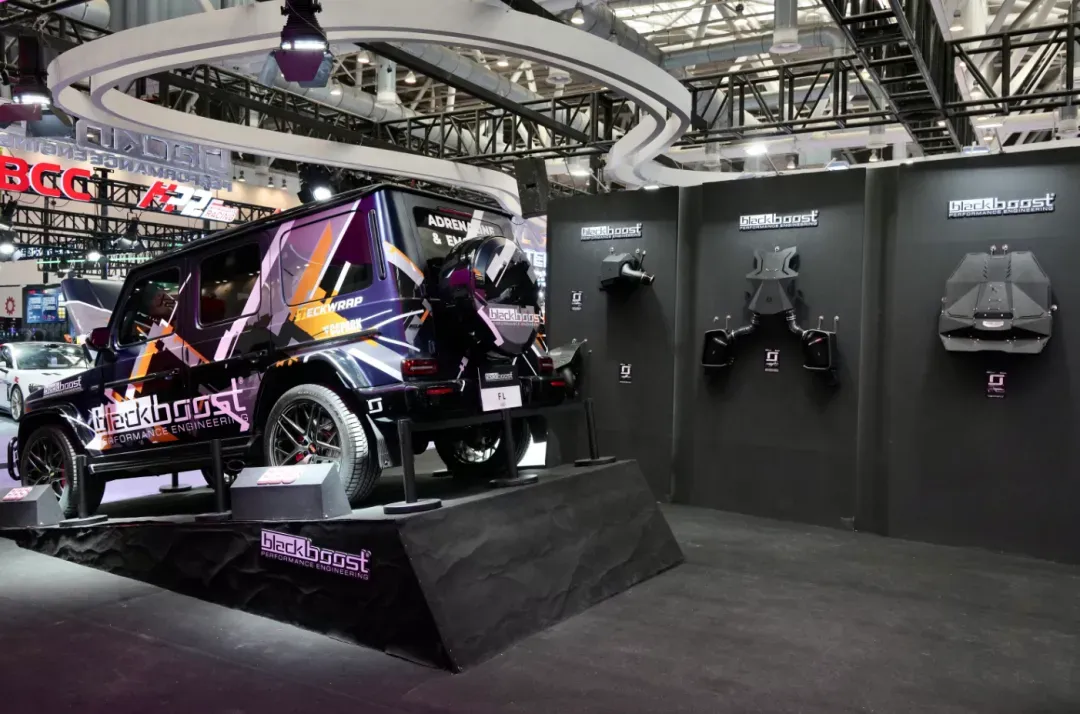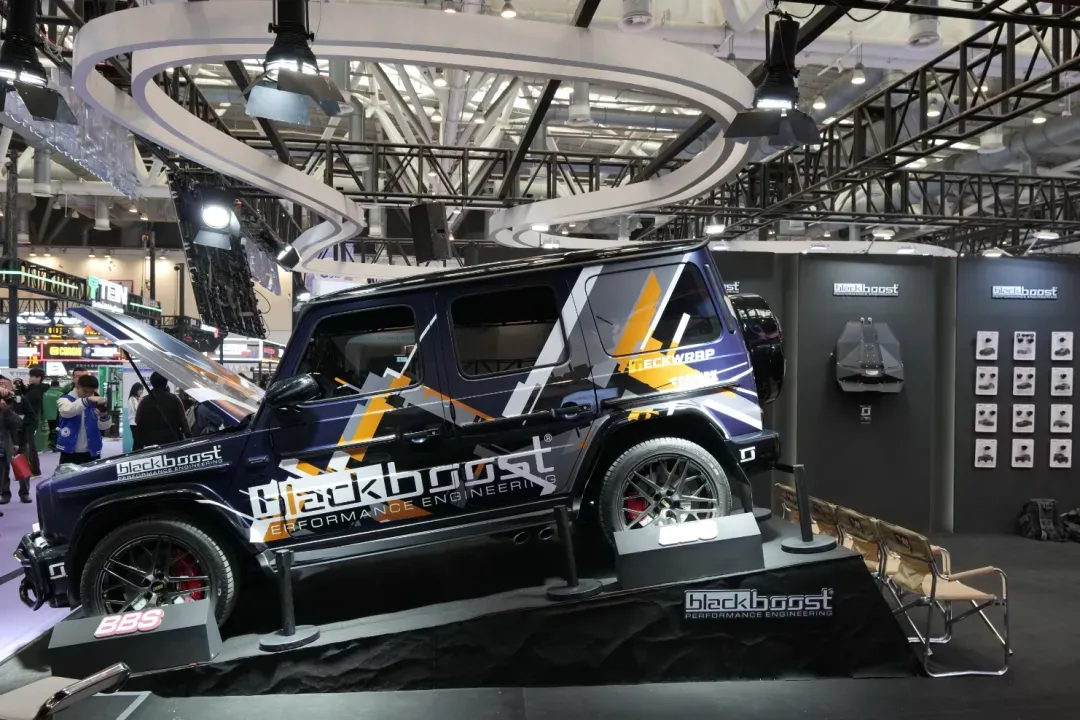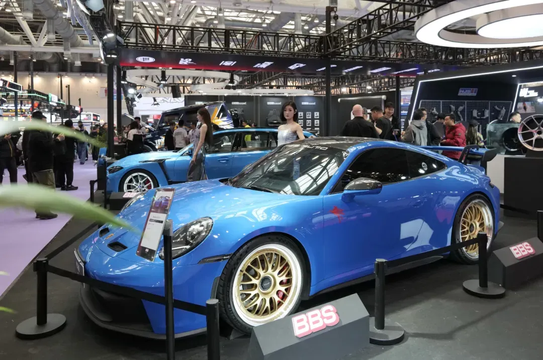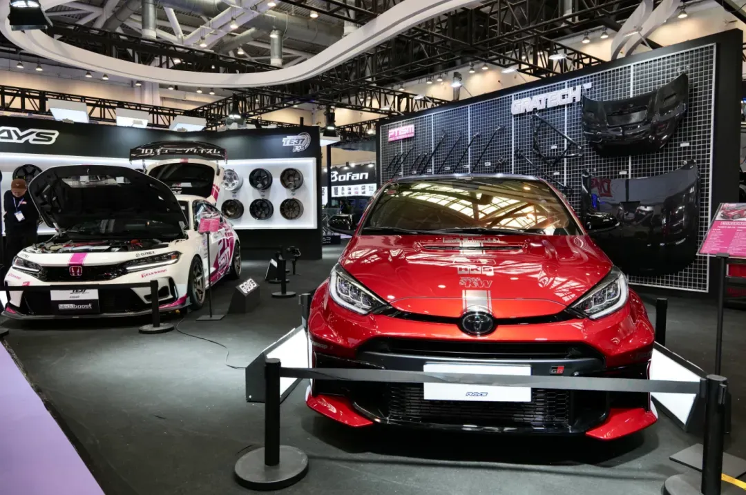 多台展车集成轮毂、进气、碳纤等品牌升级件,现场呈现完整改装方案: