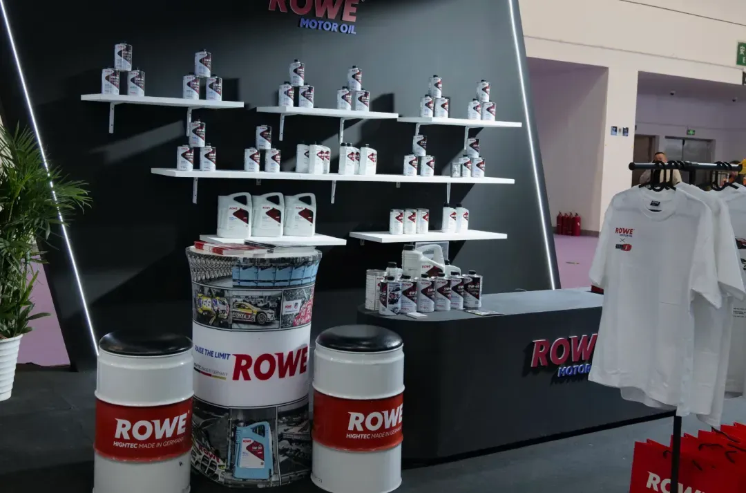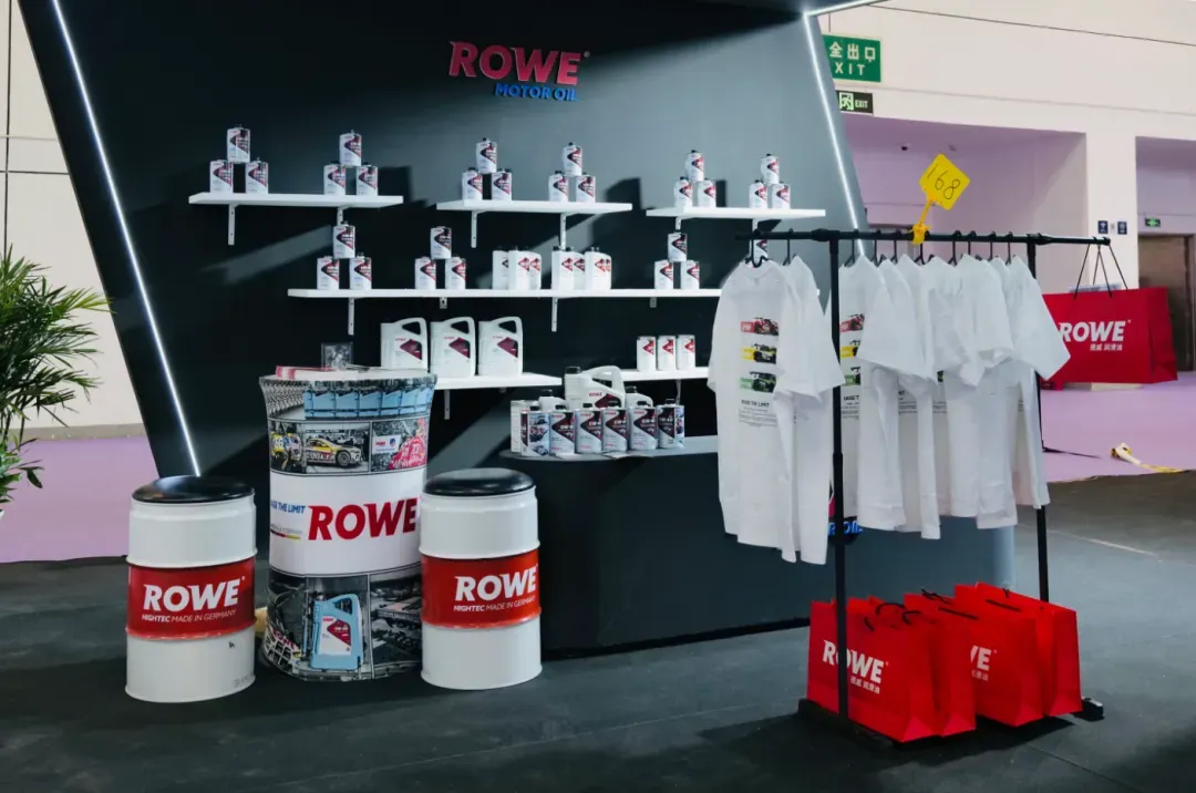现场展示了各粘度等级的赛用酯类机油,以及赛用冷却液、齿轮油等全系列产品。此外,以ROWE RACING赛车为元素的 “ROWE x Zero Racing”限量款联名T恤也在现场发售。