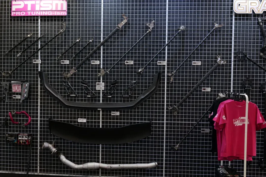 由上海SRT创立的自主品牌PTiSM,现场展示了多款碳纤顶吧,以及碳纤包围、加强件等产品。