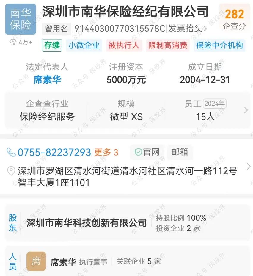 公司成立于2004年,注册资本是5000万元,总部在深圳,是一家有超20年历史的老牌保险中介,当下有26家分支机构还在运营,覆盖广东、山西、四川、湖南、重庆等好几个省份,2024年员工有992人, 还持有保险中介许可证(有效期到2027年4月。)该公司实际控制人为席素华,总持股比例:63.75%。但真正值得关注的,过去四年,该公司员工从2021年的6992人,降为2022年的1855人,2024年只剩955人。而它过去3年的业绩曲线:2022年,营收是1.37亿元,净亏损1544万元,2023年,营收一下降到4812万元,亏损减少到344万元,2024年, 营收回涨到7485万元,净利润达到2674万元成功扭转亏损,这条V型曲线的背后,是一场典型的瘦身求生,聚焦盈利之路。孙宏宇这时候加入, 承担的明显不只是守业任务,监管批复特别强调「持续学习经济金融法律法规」牢固树立风险合规意识,这和当下"报行合一”严监管环境很契合,对于刚走出亏损困境的南华而言,合规不是成本,而是生存底线。行业大背景下,中小保险中介正在经历残酷的洗牌,从2024年以来已经有好几百家机构注销退出,那些能活下来还能赚到钱的公司,已经证明了它的基本面是有韧性的, 南华近千人的团队、26家分支的网络基础还在,扭亏之后的关键问题就是怎么从活下来变成迅速发展起来。新的高管到任, 也许正好是南华从防守变成进攻的开端,这个开了二十年的老店,能不能借着人事整顿开启第二条增长曲线,市场正在等。扩展阅读: