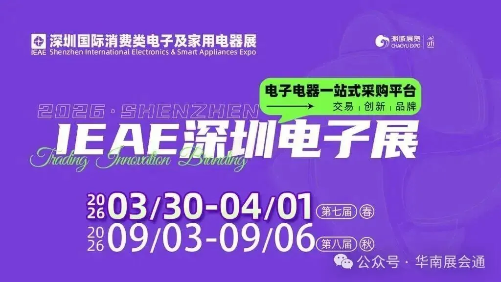 作为中国电子电器垂直领域的专业展会,2026IEAE深圳国际消费类电子及家用电器展(春)将于3月30日-4月1日在深圳福田会展中心盛大举办!