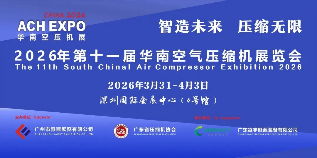 2026第十一届华南空气压缩机展览会与第27届ITES深圳工业展深度联动,一场覆盖全产业链的工业盛会即将开幕!“双碳”背景下,压缩空气系统是工厂节能的重中之重。本届展会汇聚全国知名品牌,围绕 “全场景节能” 展开硬核呈现——从主机到真空、从鼓风机到后处理,一站式配齐!