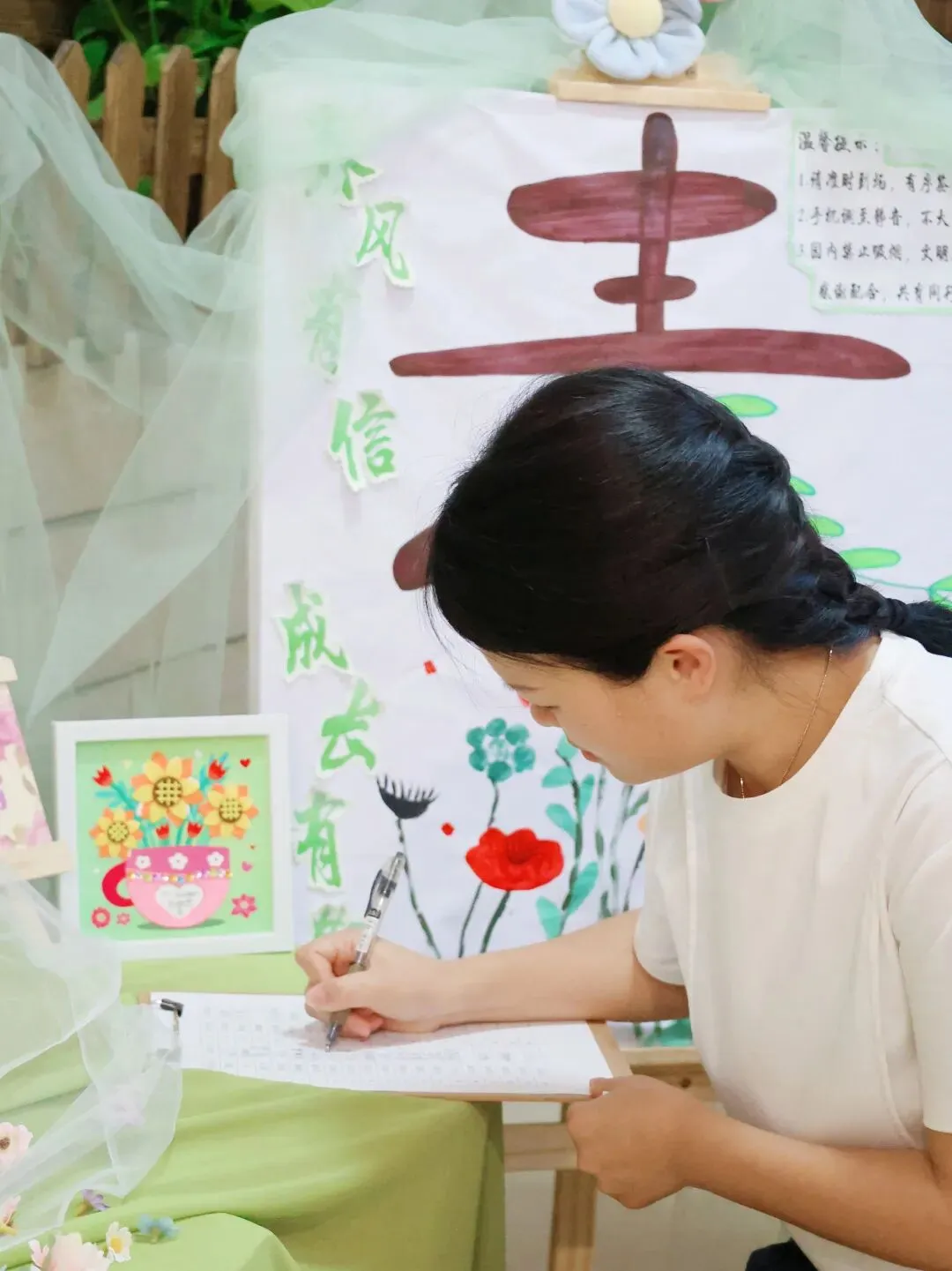 老师们以春为意,以爱为名,将班级装点成一隅温暖的小世界。每一处布置,皆藏巧思;每一个角落,皆蕴童心。签到台前,温情流淌,家长们于一笔一画间,郑重开启家园携手的崭新篇章。